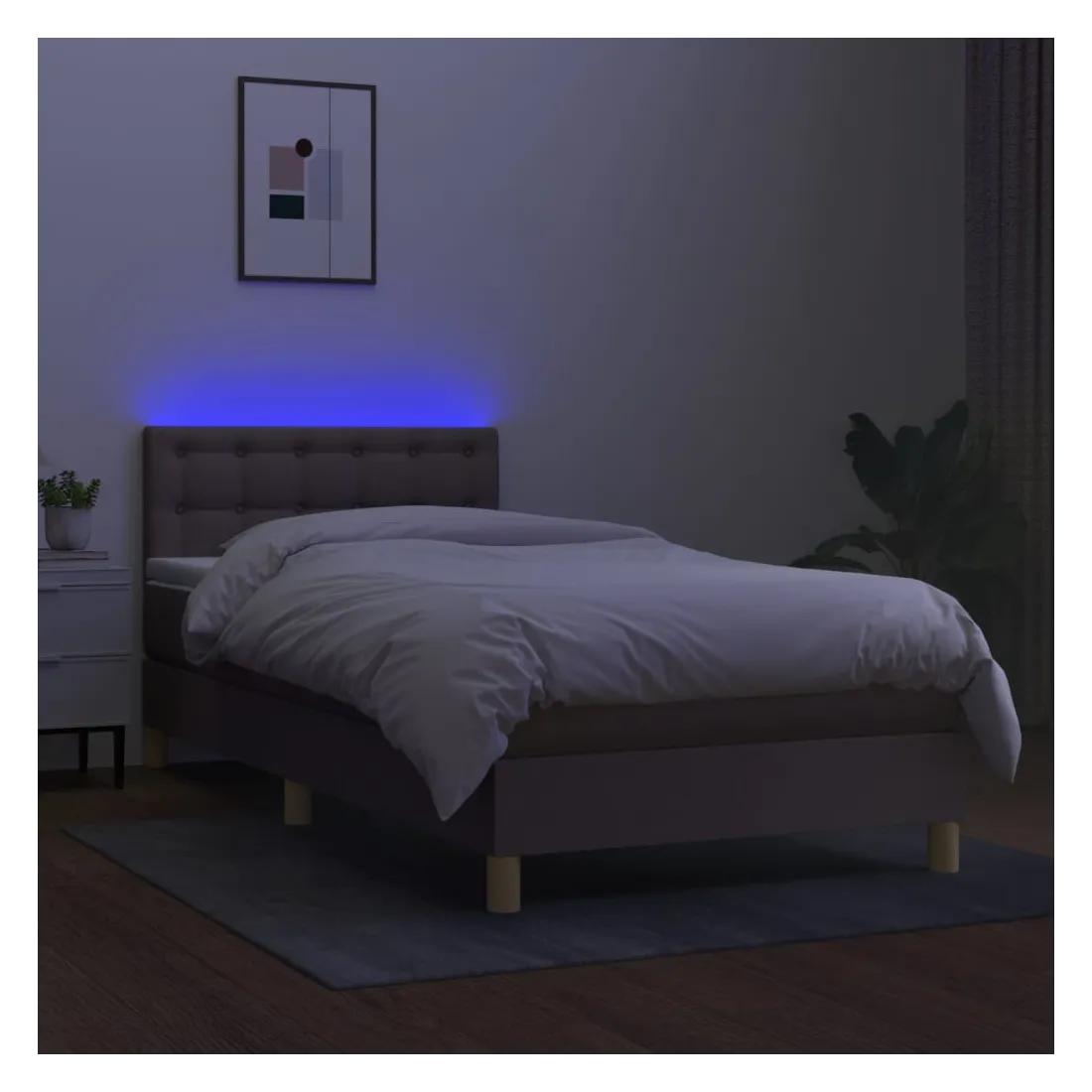Sommier à lattes de lit avec matelas LED Taupe 90x200 cm Tissu