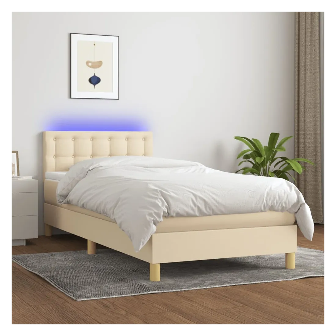Sommier à lattes de lit avec matelas LED Crème 90x200 cm Tissu