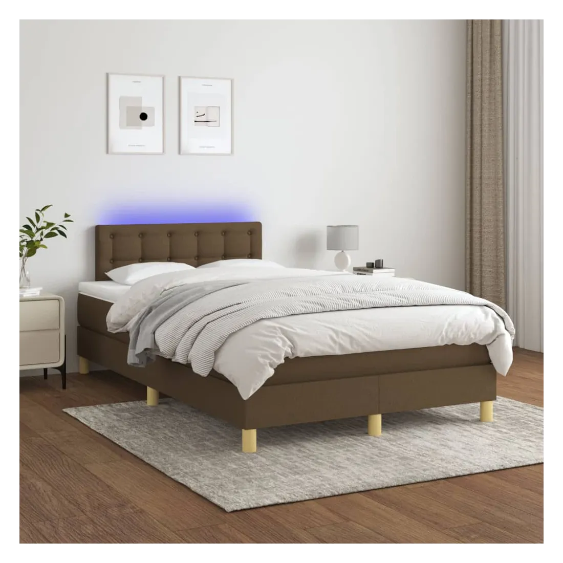 Utilisez ce sommier tapissier avec matelas et LED pour profiter d'un sommeil réparateur ! C'est le point central de votre chambre à coucher. Tissu durable : le tissu présente un aspect simple et épuré, et il est respirant et durable.Tête de lit pratique : la tête de lit est réglable en hauteur selon vos préférences. La tête de lit vous offre un excellent soutien du dos lorsque vous êtes assis dans votre lit pour lire ou regarder la télévision.Bande LED colorée : apportez de l'éclairage dans l'obscurité avec des lumières LED colorées !Matelas à ressorts ensachés : le ressort ensaché individuel intégré est connu pour sa très haute qualité tout en assurant un haut niveau de durabilité et d'adaptabilité. Il peut absorber efficacement le bruit et les chocs causés par les sauts et les rotations.Protège-matelas doux pour la peau : le protège-matelas est recouvert d'un tissu résistant et doux pour la peau, ce qui le rend souple et confortable. Remarque :Pour des raisons d'hygiène, le matelas ne peut pas être retourné si l'emballage est retiré ou ouvert.Chaque produit est livré avec un manuel de montage dans la boîte pour un montage facile.Seule la partie avec un symbole de ciseaux peut être coupée et seule la partie avec l'USB continuera à fonctionner comme avant.Ce produit est doté d'un connecteur USB, mais la source d'alimentation certifiée de USB 5V n'est pas incluse.