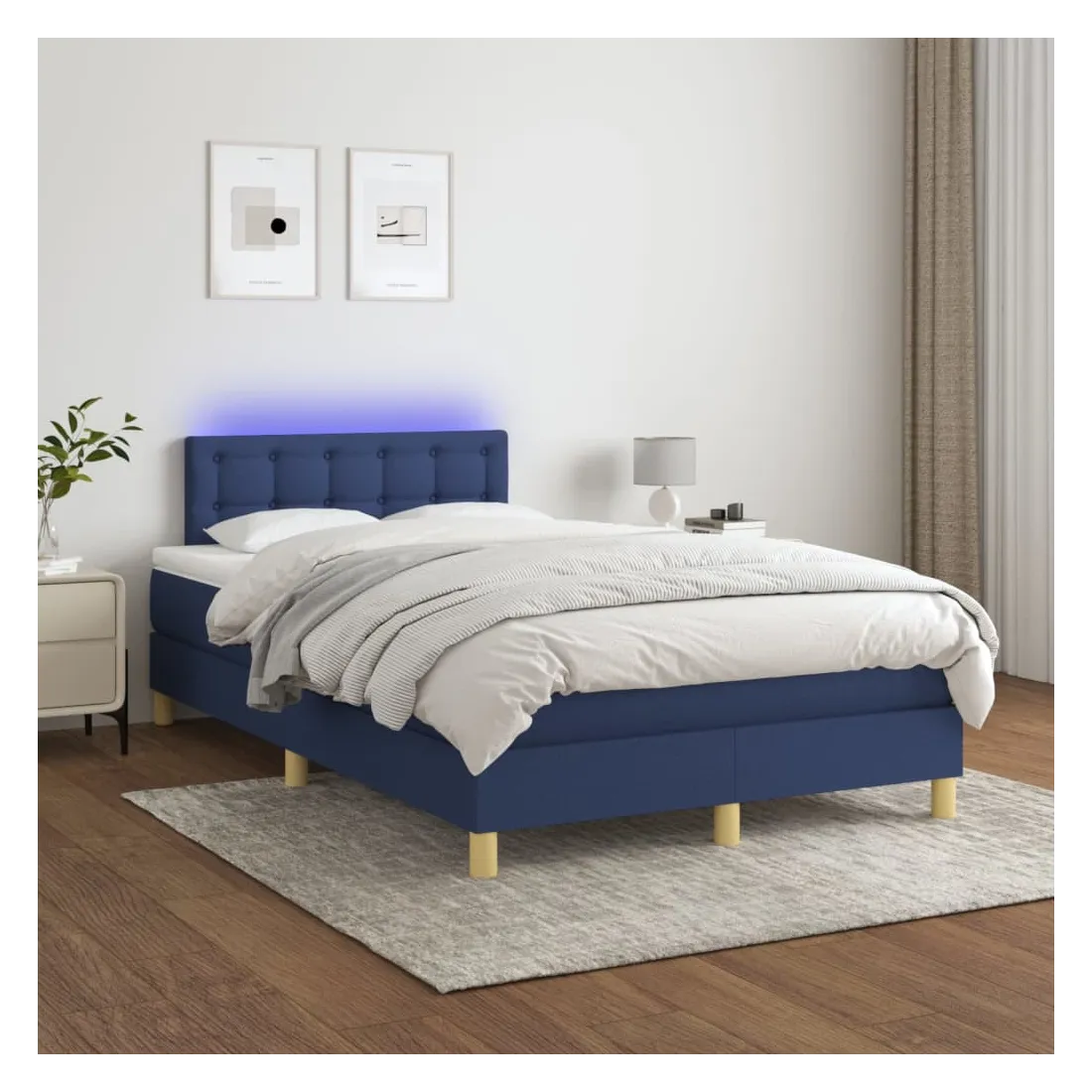 Sommier à lattes de lit avec matelas LED Bleu 120x200 cm Tissu