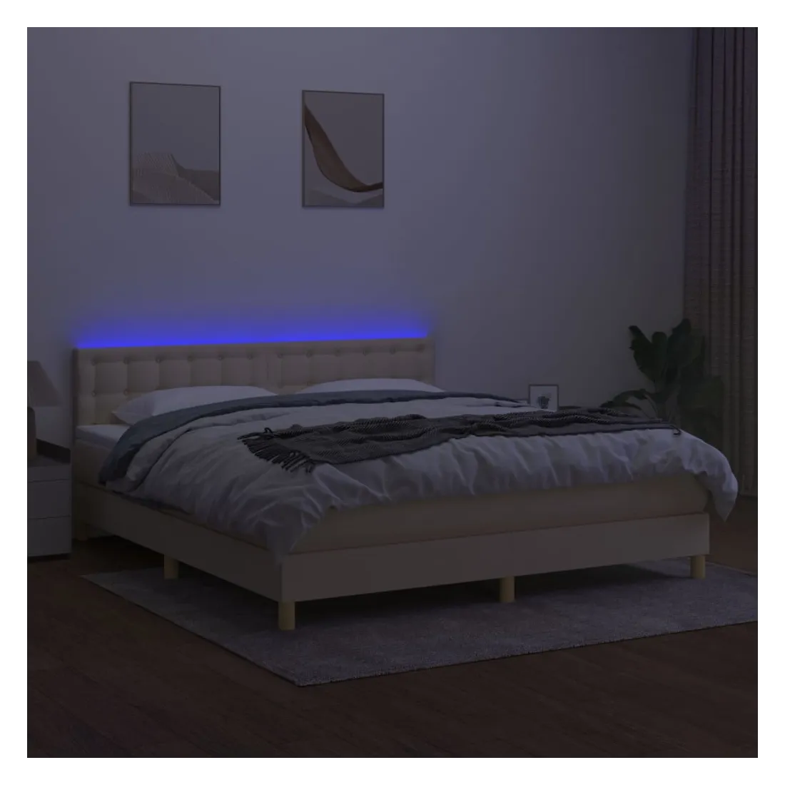 Utilisez ce sommier tapissier avec matelas et LED pour profiter d'un sommeil réparateur ! C'est le point central de votre chambre à coucher. Tissu durable : le tissu présente un aspect simple et épuré, et il est respirant et durable.Tête de lit pratique : la tête de lit est réglable en hauteur selon vos préférences. La tête de lit vous offre un excellent soutien du dos lorsque vous êtes assis dans votre lit pour lire ou regarder la télévision.Bande LED colorée : apportez de l'éclairage dans l'obscurité avec des lumières LED colorées !Matelas à ressorts ensachés : le ressort ensaché individuel intégré est connu pour sa très haute qualité tout en assurant un haut niveau de durabilité et d'adaptabilité. Il peut absorber efficacement le bruit et les chocs causés par les sauts et les rotations.Protège-matelas doux pour la peau : le protège-matelas est recouvert d'un tissu résistant et doux pour la peau, ce qui le rend souple et confortable. Remarque :Pour des raisons d'hygiène, le matelas ne peut pas être retourné si l'emballage est retiré ou ouvert.Chaque produit est livré avec un manuel de montage dans la boîte pour un montage facile.Seule la partie avec un symbole de ciseaux peut être coupée et seule la partie avec l'USB continuera à fonctionner comme avant.Ce produit est doté d'un connecteur USB, mais la source d'alimentation certifiée de USB 5V n'est pas incluse.