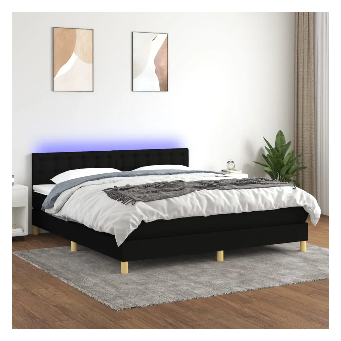 Sommier à lattes de lit avec matelas LED Noir 180x200 cm Tissu