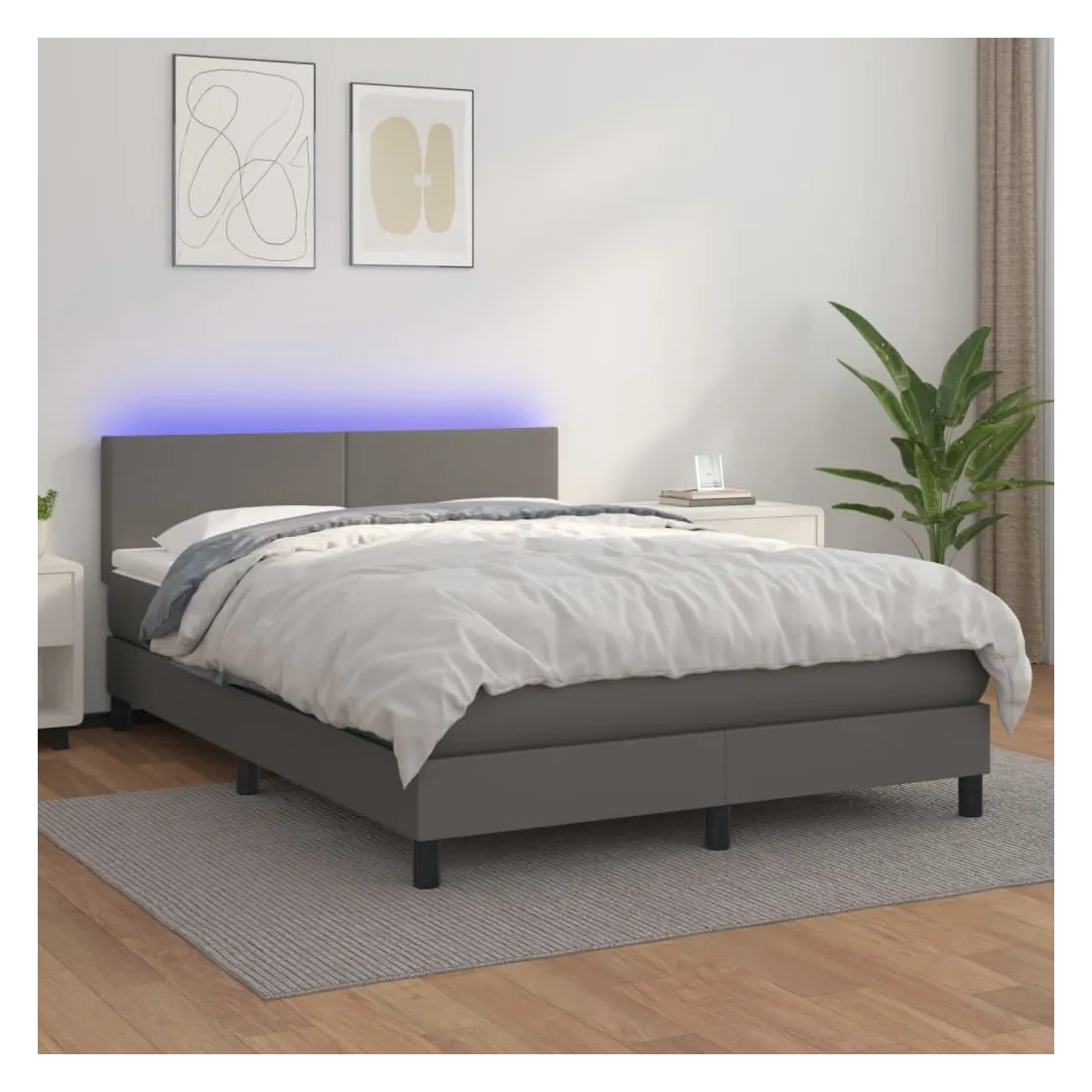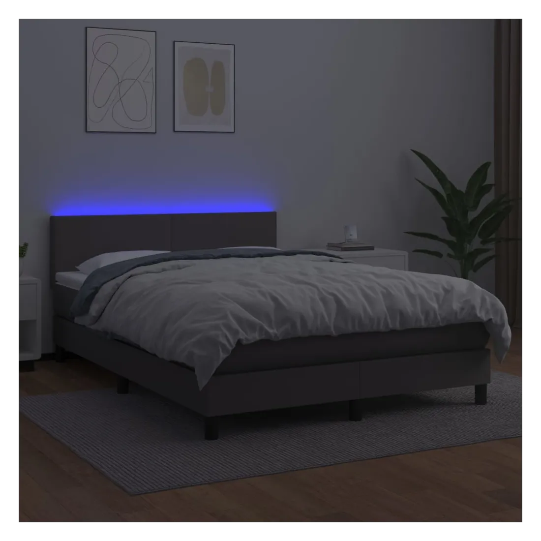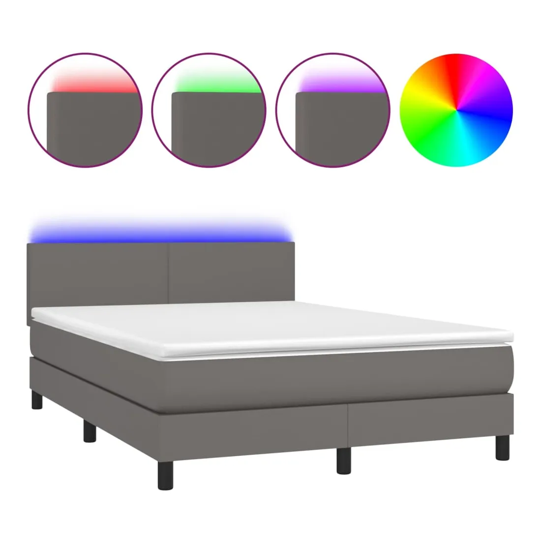 Sommier à lattes de lit avec matelas et LED Gris 140x190 cm