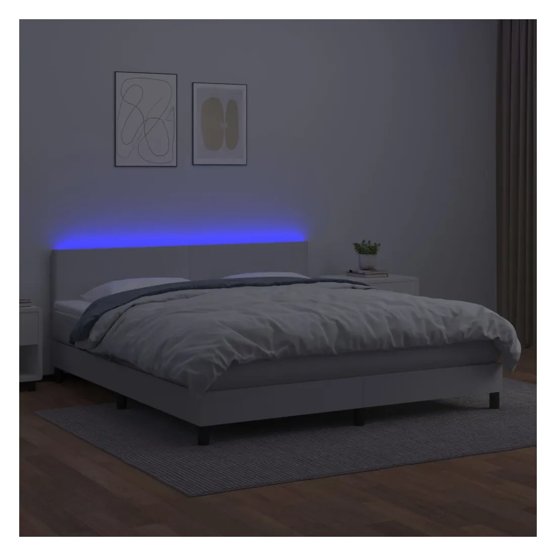 Utilisez ce sommier tapissier avec matelas et LED pour profiter d'un sommeil réparateur ! C'est le point central de votre chambre à coucher. Similicuir durable : le similicuir de qualité supérieure est un matériau très durable. Il est résistant aux taches, ce qui le rend facile à nettoyer avec un chiffon humide. La surface lisse donne également un aspect luxueux et la beauté du cuir véritable.Tête de lit pratique : la tête de lit est réglable en hauteur selon vos préférences. La tête de lit vous offre un excellent soutien du dos lorsque vous êtes assis dans votre lit pour lire ou regarder la télévision.Bande LED colorée : apportez de l'éclairage dans l'obscurité avec des lumières LED colorées !Matelas à ressorts ensachés : le ressort ensaché individuel intégré est connu pour sa très haute qualité tout en assurant un haut niveau de durabilité et d'adaptabilité. Il peut absorber efficacement le bruit et les chocs causés par les sauts et les rotations.Protège-matelas doux pour la peau : le protège-matelas est recouvert d'un tissu résistant et doux pour la peau, ce qui le rend souple et confortable. Remarque :Pour des raisons d'hygiène, le matelas ne peut pas être retourné si l'emballage est retiré ou ouvert.Chaque produit est livré avec un manuel de montage dans la boîte pour un montage facile.Seule la partie avec un symbole de ciseaux peut être coupée et seule la partie avec l'USB continuera à fonctionner comme avant.Ce produit est doté d'un connecteur USB, mais la source d'alimentation certifiée de USB 5V n'est pas incluse.