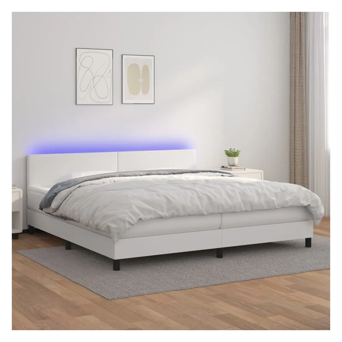 Utilisez ce sommier tapissier avec matelas et LED pour profiter d'un sommeil réparateur ! C'est le point central de votre chambre à coucher. Similicuir durable : le similicuir de qualité supérieure est un matériau très durable. Il est résistant aux taches, ce qui le rend facile à nettoyer avec un chiffon humide. La surface lisse donne également un aspect luxueux et la beauté du cuir véritable.Tête de lit pratique : la tête de lit est réglable en hauteur selon vos préférences. La tête de lit vous offre un excellent soutien du dos lorsque vous êtes assis dans votre lit pour lire ou regarder la télévision.Bande LED colorée : apportez de l'éclairage dans l'obscurité avec des lumières LED colorées !Matelas à ressorts ensachés : le ressort ensaché individuel intégré est connu pour sa très haute qualité tout en assurant un haut niveau de durabilité et d'adaptabilité. Il peut absorber efficacement le bruit et les chocs causés par les sauts et les rotations.Protège-matelas doux pour la peau : le protège-matelas est recouvert d'un tissu résistant et doux pour la peau, ce qui le rend souple et confortable. Remarque :Pour des raisons d'hygiène, le matelas ne peut pas être retourné si l'emballage est retiré ou ouvert.Chaque produit est livré avec un manuel de montage dans la boîte pour un montage facile.Seule la partie avec un symbole de ciseaux peut être coupée et seule la partie avec l'USB continuera à fonctionner comme avant.Ce produit est doté d'un connecteur USB, mais la source d'alimentation certifiée de USB 5V n'est pas incluse.