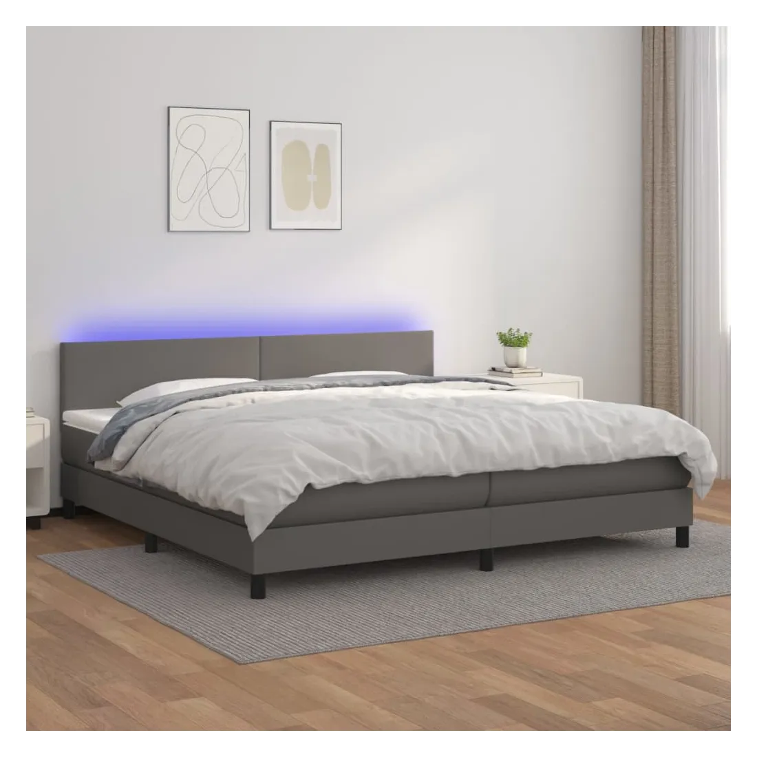 Utilisez ce sommier tapissier avec matelas et LED pour profiter d'un sommeil réparateur ! C'est le point central de votre chambre à coucher. Similicuir durable : le similicuir de qualité supérieure est un matériau très durable. Il est résistant aux taches, ce qui le rend facile à nettoyer avec un chiffon humide. La surface lisse donne également un aspect luxueux et la beauté du cuir véritable.Tête de lit pratique : la tête de lit est réglable en hauteur selon vos préférences. La tête de lit vous offre un excellent soutien du dos lorsque vous êtes assis dans votre lit pour lire ou regarder la télévision.Bande LED colorée : apportez de l'éclairage dans l'obscurité avec des lumières LED colorées !Matelas à ressorts ensachés : le ressort ensaché individuel intégré est connu pour sa très haute qualité tout en assurant un haut niveau de durabilité et d'adaptabilité. Il peut absorber efficacement le bruit et les chocs causés par les sauts et les rotations.Protège-matelas doux pour la peau : le protège-matelas est recouvert d'un tissu résistant et doux pour la peau, ce qui le rend souple et confortable. Remarque :Pour des raisons d'hygiène, le matelas ne peut pas être retourné si l'emballage est retiré ou ouvert.Chaque produit est livré avec un manuel de montage dans la boîte pour un montage facile.Seule la partie avec un symbole de ciseaux peut être coupée et seule la partie avec l'USB continuera à fonctionner comme avant.Ce produit est doté d'un connecteur USB, mais la source d'alimentation certifiée de USB 5V n'est pas incluse.