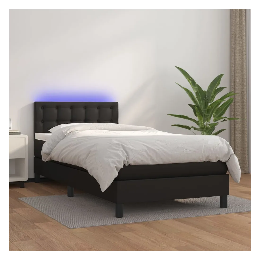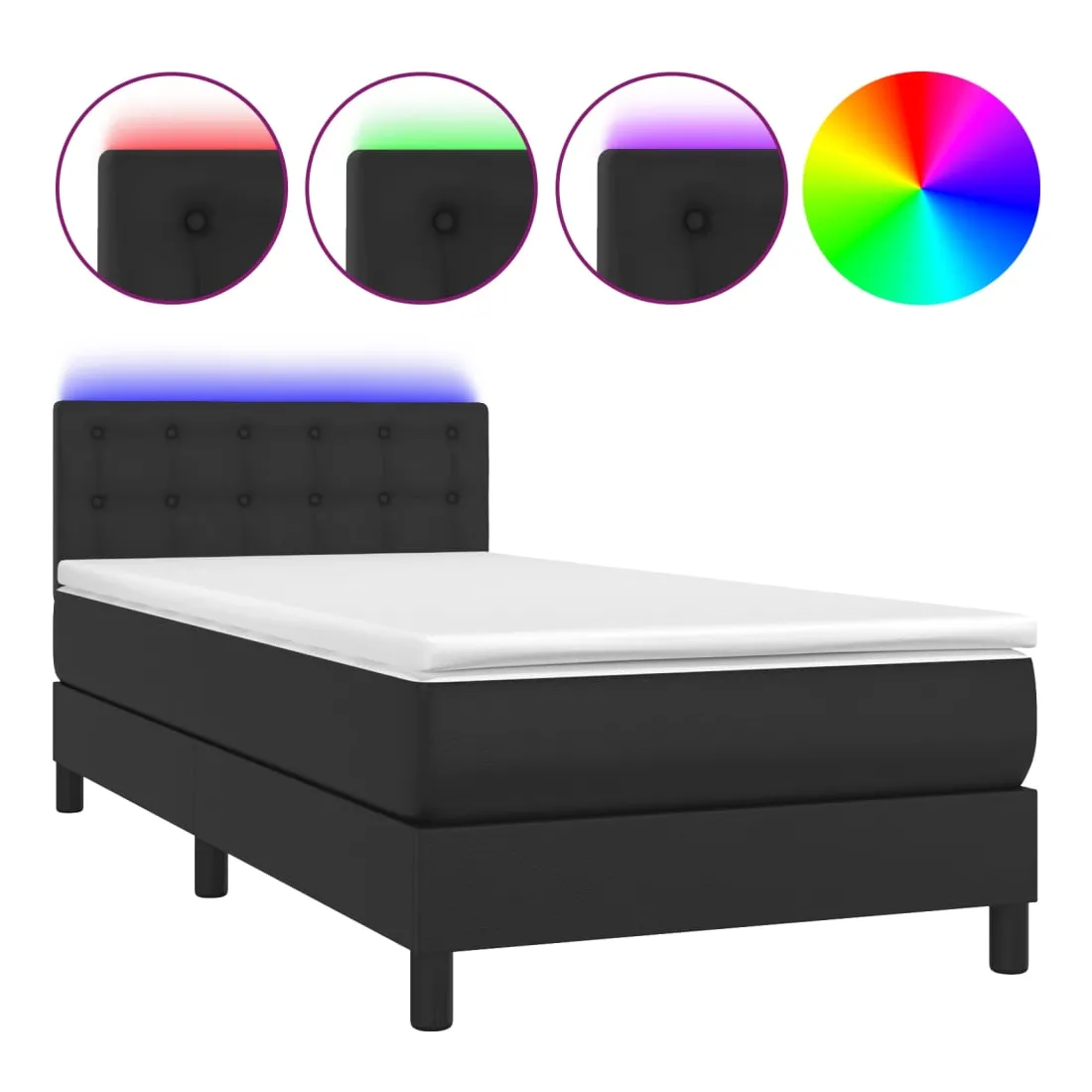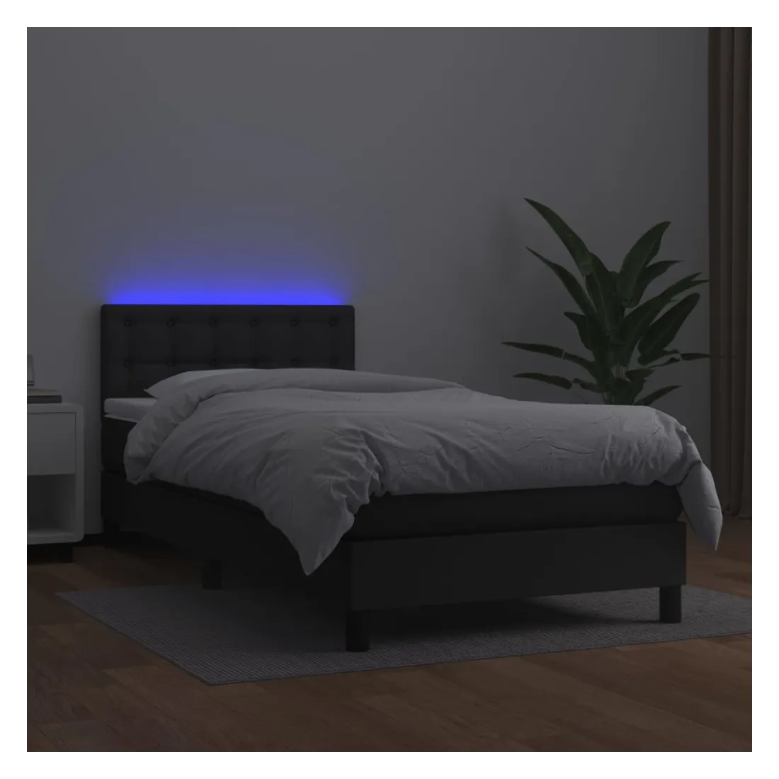 Utilisez ce sommier tapissier avec matelas et LED pour profiter d'un sommeil réparateur ! C'est le point central de votre chambre à coucher. Similicuir durable : le similicuir de qualité supérieure est un matériau très durable. Il est résistant aux taches, ce qui le rend facile à nettoyer avec un chiffon humide. La surface lisse donne également un aspect luxueux et la beauté du cuir véritable.Tête de lit pratique : la tête de lit est réglable en hauteur selon vos préférences. La tête de lit vous offre un excellent soutien du dos lorsque vous êtes assis dans votre lit pour lire ou regarder la télévision.Bande LED colorée : apportez de l'éclairage dans l'obscurité avec des lumières LED colorées !Matelas à ressorts ensachés : le ressort ensaché individuel intégré est connu pour sa très haute qualité tout en assurant un haut niveau de durabilité et d'adaptabilité. Il peut absorber efficacement le bruit et les chocs causés par les sauts et les rotations.Protège-matelas doux pour la peau : le protège-matelas est recouvert d'un tissu résistant et doux pour la peau, ce qui le rend souple et confortable. Remarque :Pour des raisons d'hygiène, le matelas ne peut pas être retourné si l'emballage est retiré ou ouvert.Chaque produit est livré avec un manuel de montage dans la boîte pour un montage facile.Seule la partie avec un symbole de ciseaux peut être coupée et seule la partie avec l'USB continuera à fonctionner comme avant.Ce produit est doté d'un connecteur USB, mais la source d'alimentation certifiée de USB 5V n'est pas incluse.