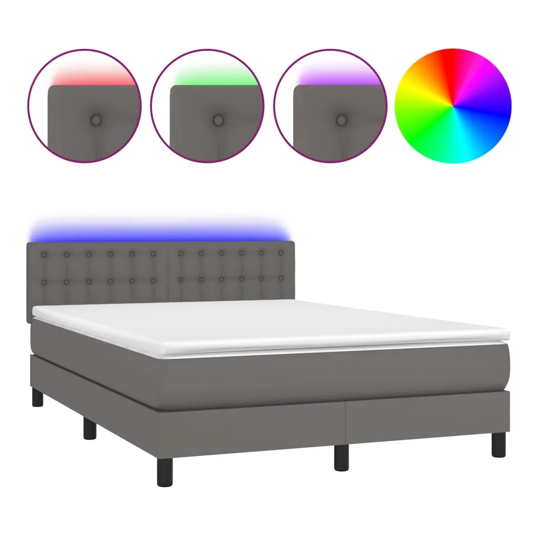 Utilisez ce sommier tapissier avec matelas et LED pour profiter d'un sommeil réparateur ! C'est le point central de votre chambre à coucher. Similicuir durable : le similicuir de qualité supérieure est un matériau très durable. Il est résistant aux taches, ce qui le rend facile à nettoyer avec un chiffon humide. La surface lisse donne également un aspect luxueux et la beauté du cuir véritable.Tête de lit pratique : la tête de lit est réglable en hauteur selon vos préférences. La tête de lit vous offre un excellent soutien du dos lorsque vous êtes assis dans votre lit pour lire ou regarder la télévision.Bande LED colorée : apportez de l'éclairage dans l'obscurité avec des lumières LED colorées !Matelas à ressorts ensachés : le ressort ensaché individuel intégré est connu pour sa très haute qualité tout en assurant un haut niveau de durabilité et d'adaptabilité. Il peut absorber efficacement le bruit et les chocs causés par les sauts et les rotations.Protège-matelas doux pour la peau : le protège-matelas est recouvert d'un tissu résistant et doux pour la peau, ce qui le rend souple et confortable. Remarque :Pour des raisons d'hygiène, le matelas ne peut pas être retourné si l'emballage est retiré ou ouvert.Chaque produit est livré avec un manuel de montage dans la boîte pour un montage facile.Seule la partie avec un symbole de ciseaux peut être coupée et seule la partie avec l'USB continuera à fonctionner comme avant.Ce produit est doté d'un connecteur USB, mais la source d'alimentation certifiée de USB 5V n'est pas incluse.