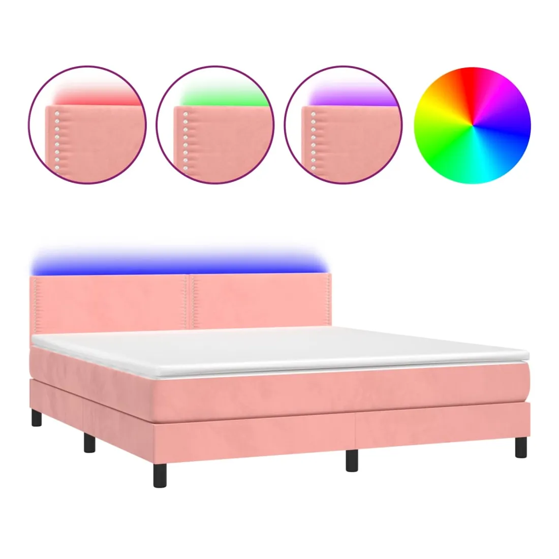Utilisez ce sommier tapissier avec matelas et LED pour profiter d'un sommeil réparateur ! C'est le point central de votre chambre à coucher. Velours doux : le velours est un tissu doux et luxueux qui se reconnaît à son tas dense de fibres uniformément coupées qui ont une touche lisse. Le tissu en velours présente un toucher doux distinctif, ce qui le rend confortable au toucher.Tête de lit pratique : la tête de lit est réglable en hauteur selon vos préférences. La tête de lit vous offre un excellent soutien du dos lorsque vous êtes assis dans votre lit pour lire ou regarder la télévision.Bande LED colorée : apportez de l'éclairage dans l'obscurité avec des lumières LED colorées !Matelas à ressorts ensachés : le ressort ensaché individuel intégré est connu pour sa très haute qualité tout en assurant un haut niveau de durabilité et d'adaptabilité. Il peut absorber efficacement le bruit et les chocs causés par les sauts et les rotations.Protège-matelas doux pour la peau : le protège-matelas est recouvert d'un tissu résistant et doux pour la peau, ce qui le rend souple et confortable. Remarque :Pour des raisons d'hygiène, le matelas ne peut pas être retourné si l'emballage est retiré ou ouvert.Chaque produit est livré avec un manuel de montage dans la boîte pour un montage facile.Seule la partie avec un symbole de ciseaux peut être coupée et seule la partie avec l'USB continuera à fonctionner comme avant.Ce produit est doté d'un connecteur USB, mais la source d'alimentation certifiée de USB 5V n'est pas incluse.
