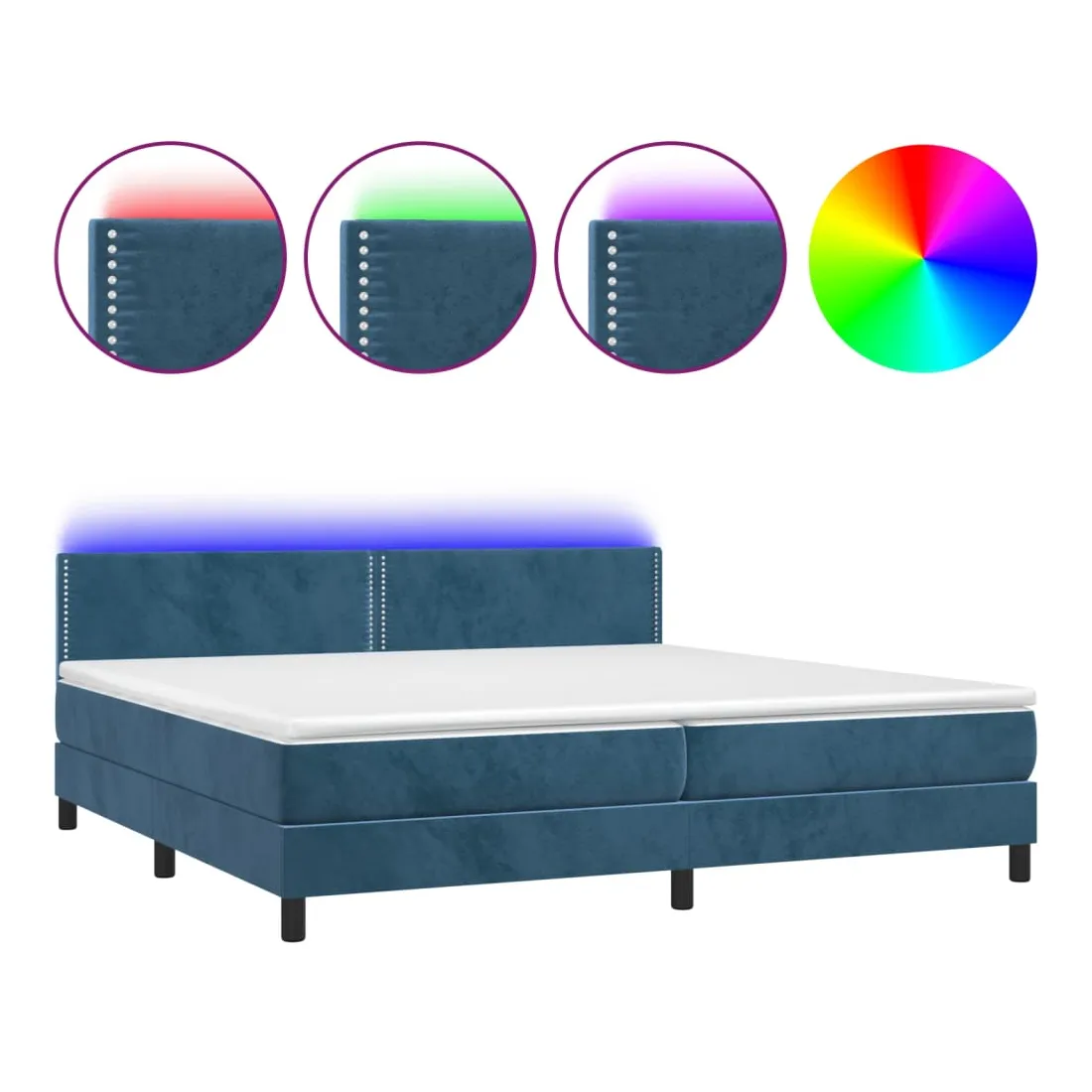 Utilisez ce sommier tapissier avec matelas et LED pour profiter d'un sommeil réparateur ! C'est le point central de votre chambre à coucher. Velours doux : le velours est un tissu doux et luxueux qui se reconnaît à son tas dense de fibres uniformément coupées qui ont une touche lisse. Le tissu en velours présente un toucher doux distinctif, ce qui le rend confortable au toucher.Tête de lit pratique : la tête de lit est réglable en hauteur selon vos préférences. La tête de lit vous offre un excellent soutien du dos lorsque vous êtes assis dans votre lit pour lire ou regarder la télévision.Bande LED colorée : apportez de l'éclairage dans l'obscurité avec des lumières LED colorées !Matelas à ressorts ensachés : le ressort ensaché individuel intégré est connu pour sa très haute qualité tout en assurant un haut niveau de durabilité et d'adaptabilité. Il peut absorber efficacement le bruit et les chocs causés par les sauts et les rotations.Protège-matelas doux pour la peau : le protège-matelas est recouvert d'un tissu résistant et doux pour la peau, ce qui le rend souple et confortable. Remarque :Pour des raisons d'hygiène, le matelas ne peut pas être retourné si l'emballage est retiré ou ouvert.Chaque produit est livré avec un manuel de montage dans la boîte pour un montage facile.Seule la partie avec un symbole de ciseaux peut être coupée et seule la partie avec l'USB continuera à fonctionner comme avant.Ce produit est doté d'un connecteur USB, mais la source d'alimentation certifiée de USB 5V n'est pas incluse.