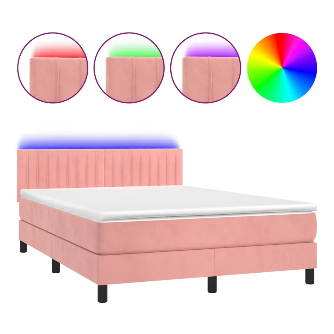 Utilisez ce sommier tapissier avec matelas et LED pour profiter d'un sommeil réparateur ! C'est le point central de votre chambre à coucher. Velours doux : le velours est un tissu doux et luxueux qui se reconnaît à son tas dense de fibres uniformément coupées qui ont une touche lisse. Le tissu en velours présente un toucher doux distinctif, ce qui le rend confortable au toucher.Tête de lit pratique : la tête de lit est réglable en hauteur selon vos préférences. La tête de lit vous offre un excellent soutien du dos lorsque vous êtes assis dans votre lit pour lire ou regarder la télévision.Bande LED colorée : apportez de l'éclairage dans l'obscurité avec des lumières LED colorées !Matelas à ressorts ensachés : le ressort ensaché individuel intégré est connu pour sa très haute qualité tout en assurant un haut niveau de durabilité et d'adaptabilité. Il peut absorber efficacement le bruit et les chocs causés par les sauts et les rotations.Protège-matelas doux pour la peau : le protège-matelas est recouvert d'un tissu résistant et doux pour la peau, ce qui le rend souple et confortable. Remarque :Pour des raisons d'hygiène, le matelas ne peut pas être retourné si l'emballage est retiré ou ouvert.Chaque produit est livré avec un manuel de montage dans la boîte pour un montage facile.Seule la partie avec un symbole de ciseaux peut être coupée et seule la partie avec l'USB continuera à fonctionner comme avant.Ce produit est doté d'un connecteur USB, mais la source d'alimentation certifiée de USB 5V n'est pas incluse.