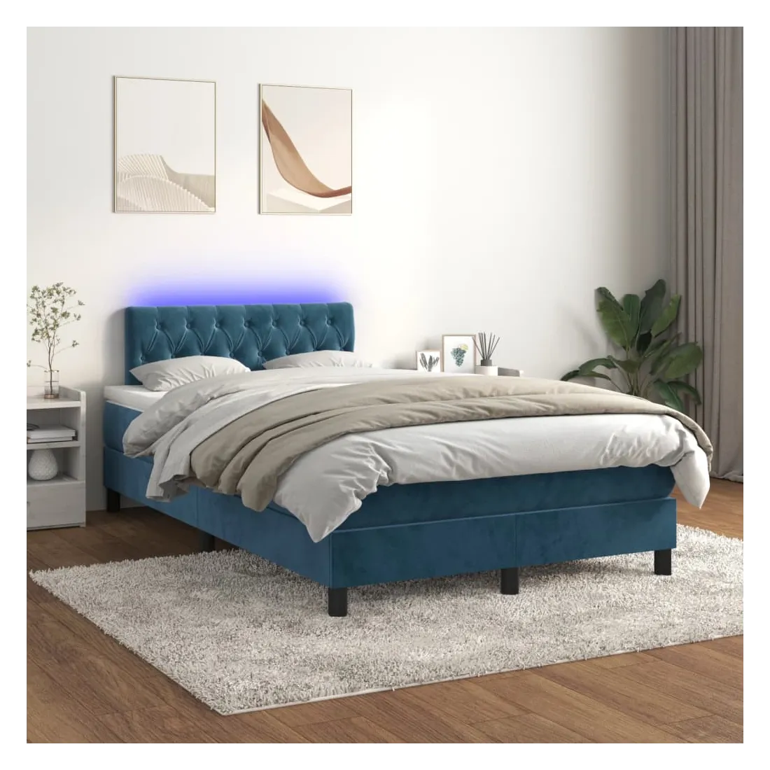 Sommier à lattes de lit avec matelas LED Bleu foncé 120x200 cm