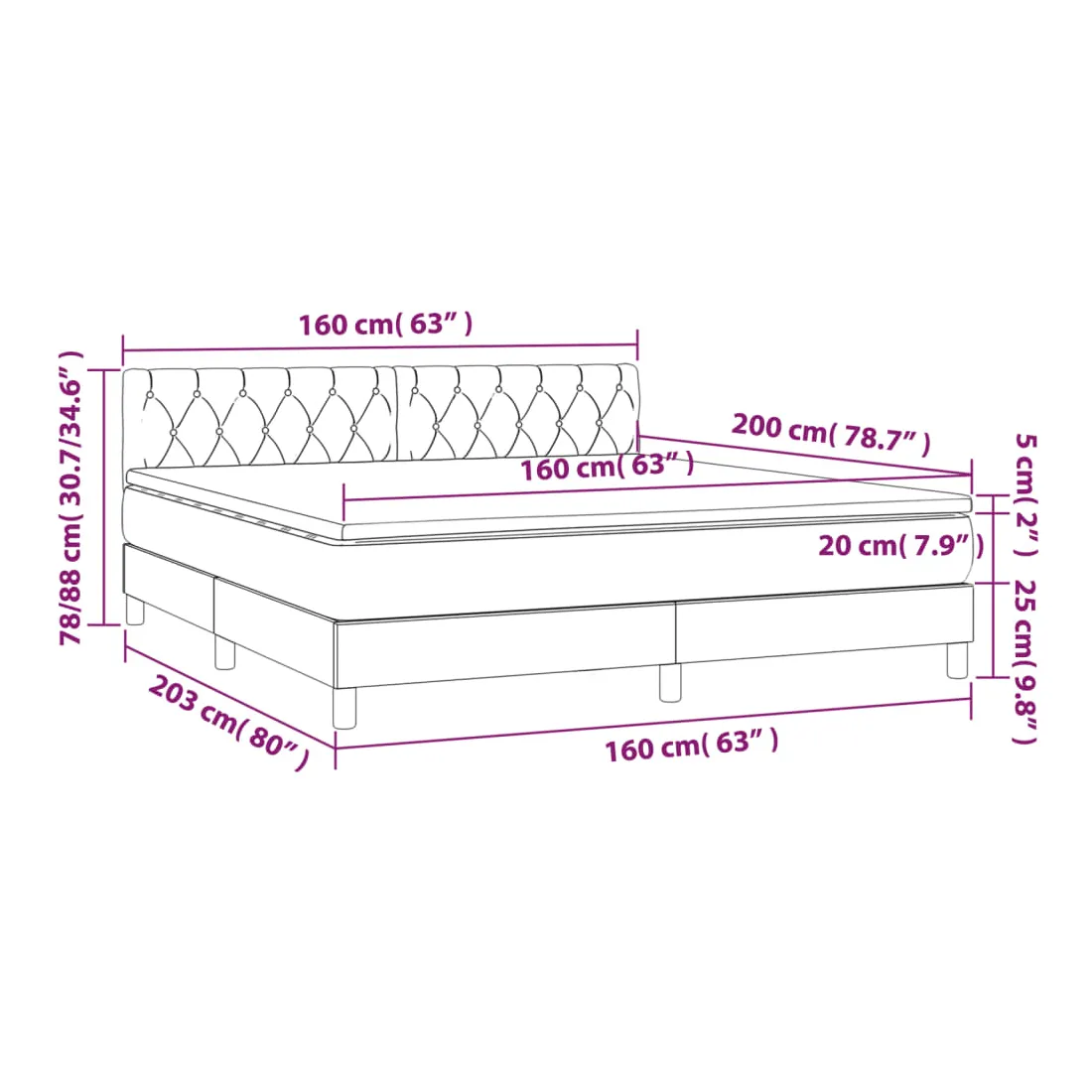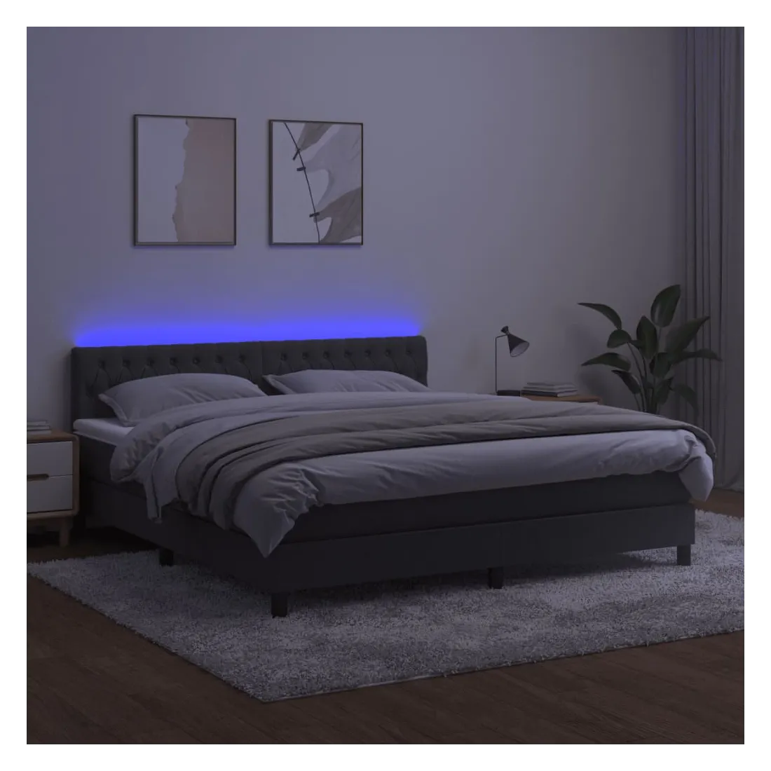 Sommier à lattes de lit avec matelas LED Gris foncé 160x200 cm