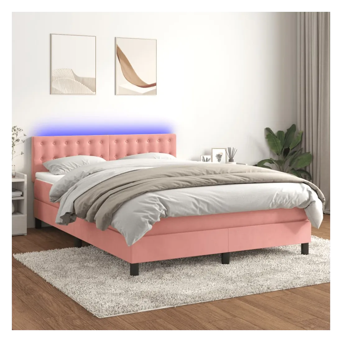 Sommier à lattes de lit avec matelas et LED Rose 140x190 cm