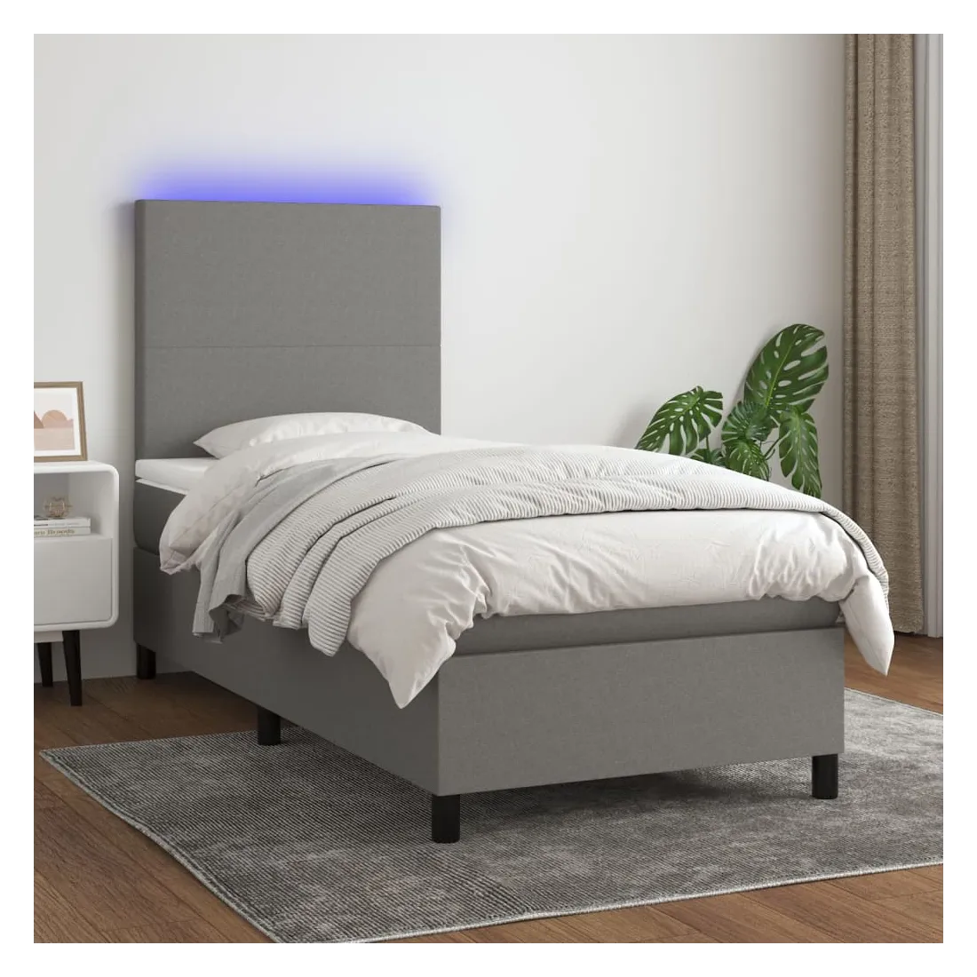 Utilisez ce sommier tapissier avec matelas et LED pour profiter d'un sommeil réparateur ! C'est le point central de votre chambre à coucher. Tissu durable : le tissu présente un aspect simple et épuré, et il est respirant et durable.Tête de lit pratique : la tête de lit est réglable en hauteur selon vos préférences. La tête de lit vous offre un excellent soutien du dos lorsque vous êtes assis dans votre lit pour lire ou regarder la télévision.Bande LED colorée : apportez de l'éclairage dans l'obscurité avec des lumières LED colorées !Matelas à ressorts ensachés : le ressort ensaché individuel intégré est connu pour sa très haute qualité tout en assurant un haut niveau de durabilité et d'adaptabilité. Il peut absorber efficacement le bruit et les chocs causés par les sauts et les rotations.Protège-matelas doux pour la peau : le protège-matelas est recouvert d'un tissu résistant et doux pour la peau, ce qui le rend souple et confortable. Remarque :Pour des raisons d'hygiène, le matelas ne peut pas être retourné si l'emballage est retiré ou ouvert.Seule la partie avec un symbole de ciseaux peut être coupée et seule la partie avec l'USB continuera à fonctionner comme avant.Chaque produit est livré avec un manuel de montage dans la boîte pour un montage facile.Ce produit est doté d'un connecteur USB, mais la source d'alimentation certifiée de USB 5V n'est pas incluse.