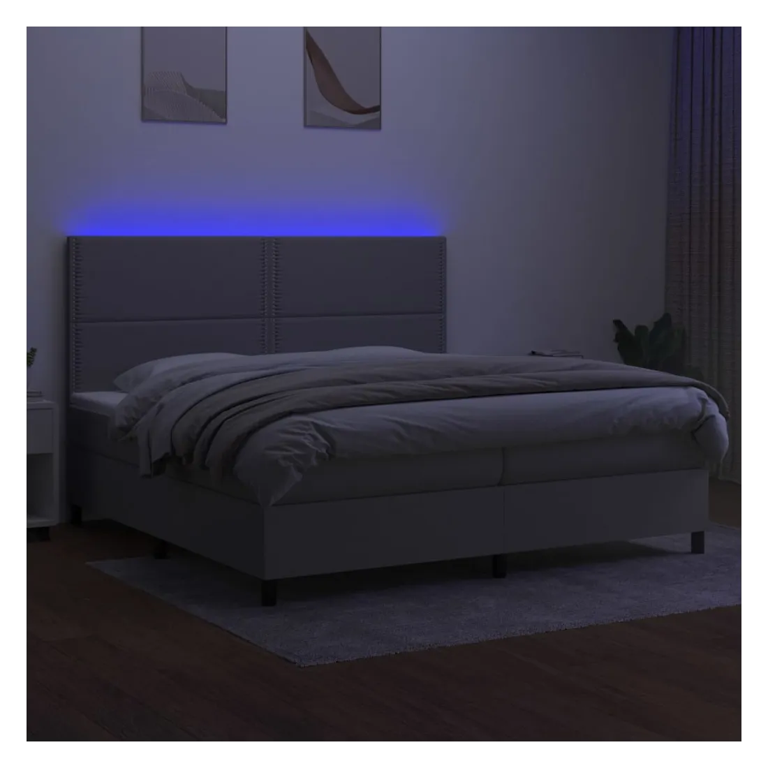 Utilisez ce sommier tapissier avec matelas et LED pour profiter d'un sommeil réparateur ! C'est le point central de votre chambre à coucher. Tissu durable : le tissu présente un aspect simple et épuré, et il est respirant et durable. Tête de lit pratique : la tête de lit est réglable en hauteur selon vos préférences. La tête de lit vous offre un excellent soutien du dos lorsque vous êtes assis dans votre lit pour lire ou regarder la télévision. Bande LED colorée : apportez de l'éclairage dans l'obscurité avec des lumières LED colorées ! Matelas à ressorts ensachés : le ressort ensaché individuel intégré est connu pour sa très haute qualité tout en assurant un haut niveau de durabilité et d'adaptabilité. Il peut absorber efficacement le bruit et les chocs causés par les sauts et les rot
