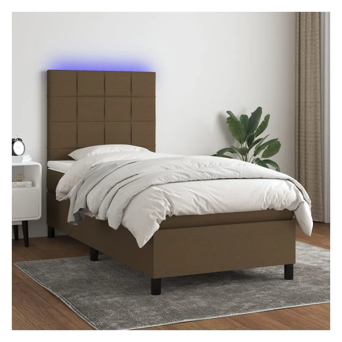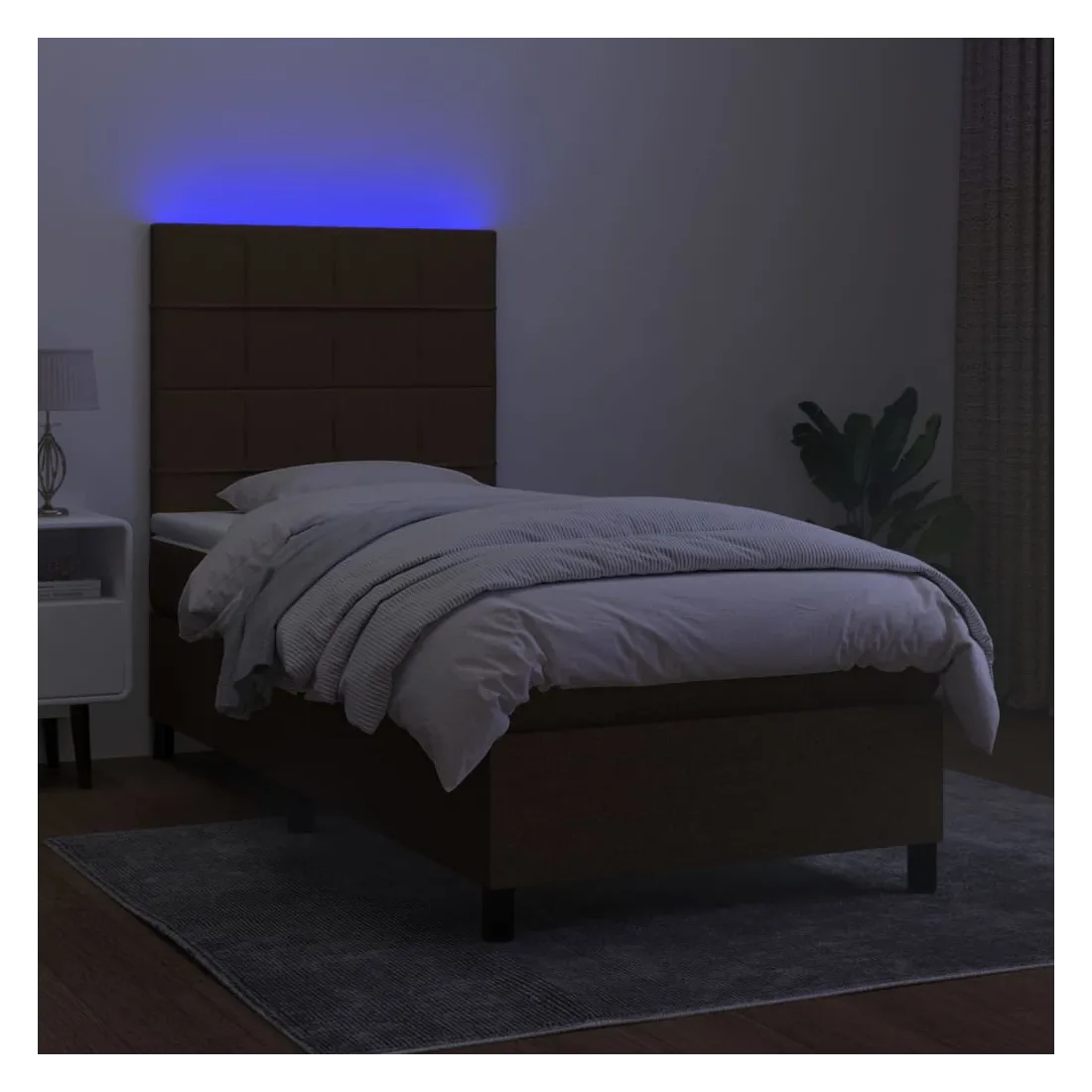 Sommier à lattes de lit et matelas et LED Marron foncé 80x200cm