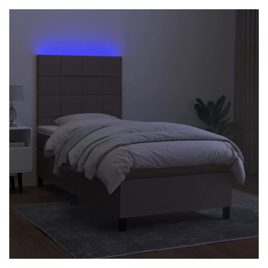 Sommier à lattes de lit et matelas et LED Taupe 90x200 cm Tissu
