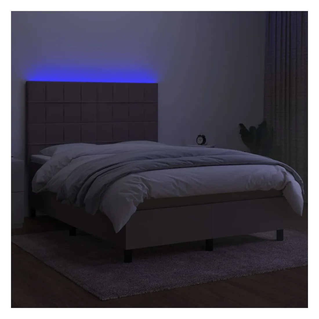 Sommier à lattes de lit et matelas et LED Taupe 140x190cm Tissu