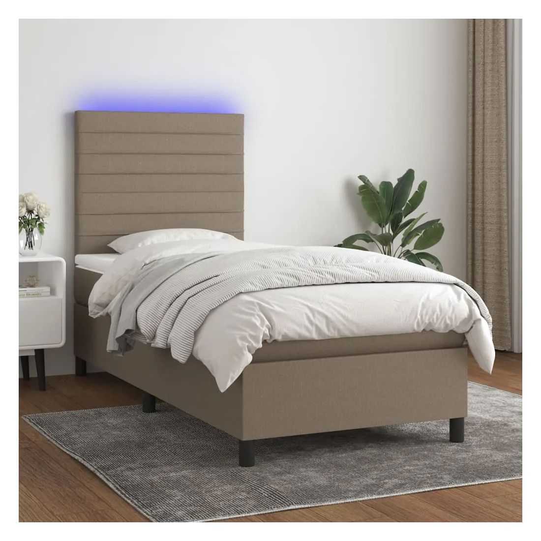 Utilisez ce sommier tapissier avec matelas et LED pour profiter d'un sommeil réparateur ! C'est le point central de votre chambre à coucher. Tissu durable : le tissu présente un aspect simple et épuré, et il est respirant et durable.Tête de lit pratique : la tête de lit est réglable en hauteur selon vos préférences. La tête de lit vous offre un excellent soutien du dos lorsque vous êtes assis dans votre lit pour lire ou regarder la télévision.Bande LED colorée : apportez de l'éclairage dans l'obscurité avec des lumières LED colorées !Matelas à ressorts ensachés : le ressort ensaché individuel intégré est connu pour sa très haute qualité tout en assurant un haut niveau de durabilité et d'adaptabilité. Il peut absorber efficacement le bruit et les chocs causés par les sauts et les rotations.Protège-matelas doux pour la peau : le protège-matelas est recouvert d'un tissu résistant et doux pour la peau, ce qui le rend souple et confortable. Remarque :Pour des raisons d'hygiène, le matelas ne peut pas être retourné si l'emballage est retiré ou ouvert.Seule la partie avec un symbole de ciseaux peut être coupée et seule la partie avec l'USB continuera à fonctionner comme avant.Chaque produit est livré avec un manuel de montage dans la boîte pour un montage facile.Ce produit est doté d'un connecteur USB, mais la source d'alimentation certifiée de USB 5V n'est pas incluse.