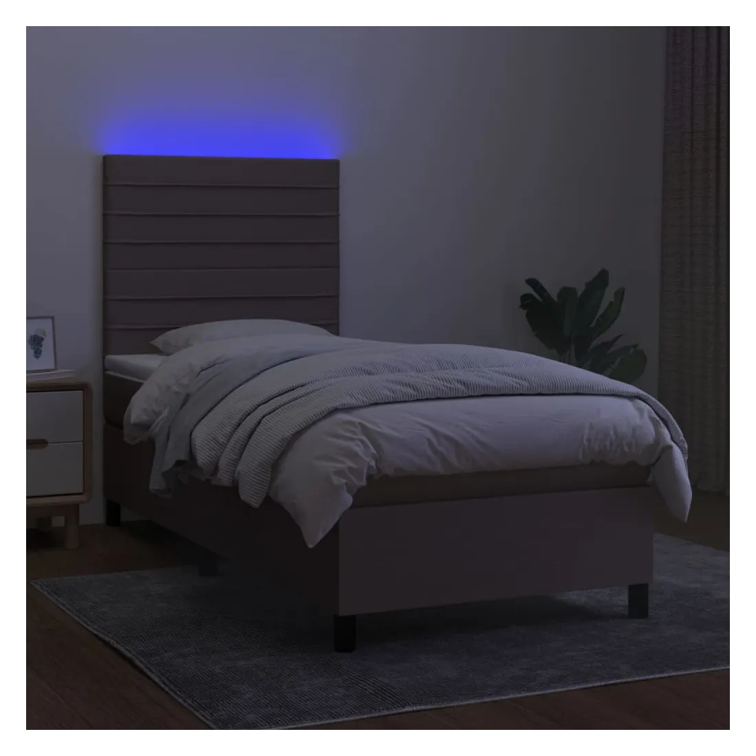 Sommier à lattes de lit et matelas et LED Taupe 90x200 cm Tissu