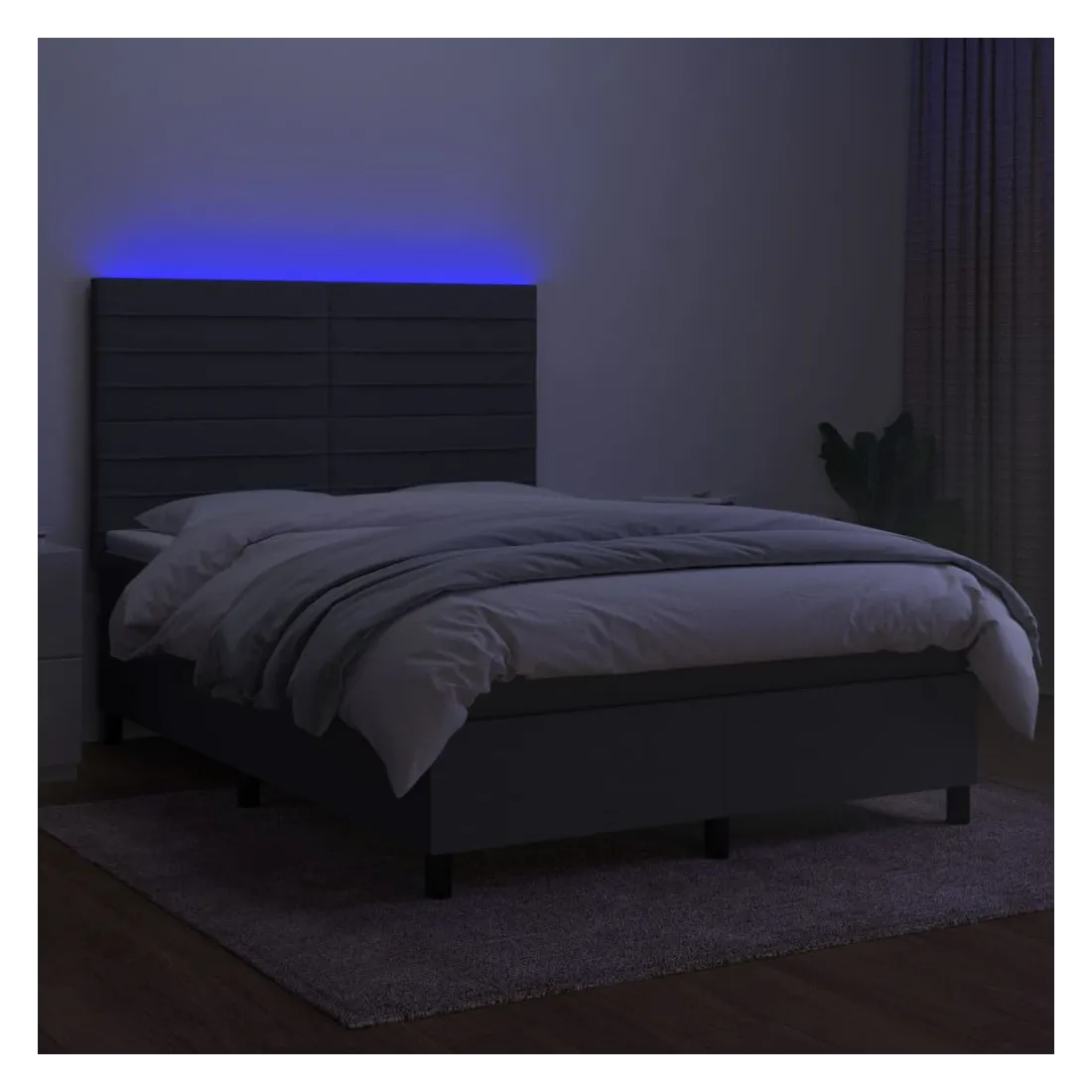 Sommier à lattes de lit et matelas et LED Gris foncé 140x190 cm
