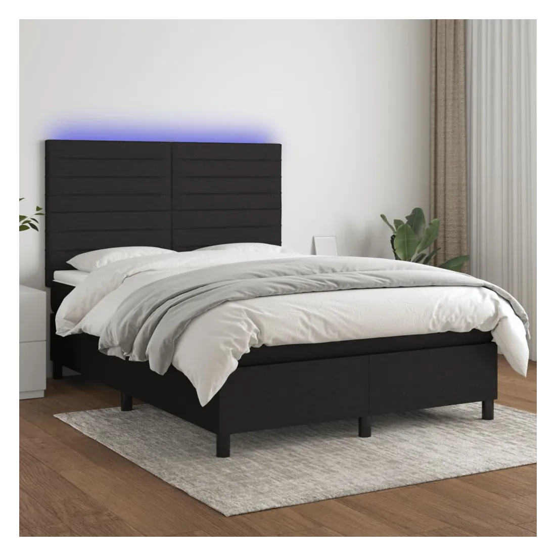 Sommier à lattes de lit et matelas et LED Noir 140x190 cm Tissu