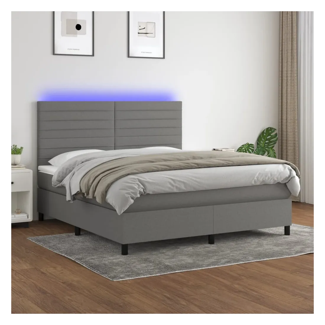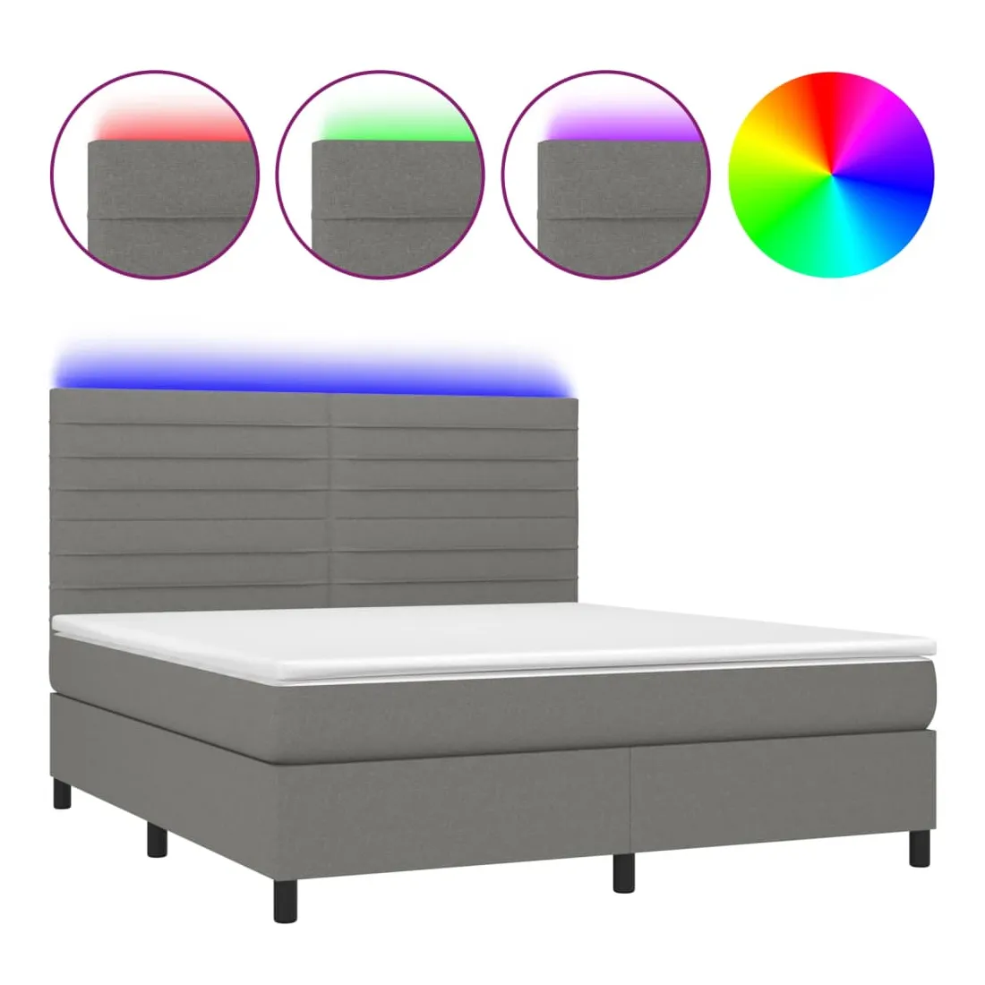 Utilisez ce sommier tapissier avec matelas et LED pour profiter d'un sommeil réparateur ! C'est le point central de votre chambre à coucher. Tissu durable : le tissu présente un aspect simple et épuré, et il est respirant et durable.Tête de lit pratique : la tête de lit est réglable en hauteur selon vos préférences. La tête de lit vous offre un excellent soutien du dos lorsque vous êtes assis dans votre lit pour lire ou regarder la télévision.Bande LED colorée : apportez de l'éclairage dans l'obscurité avec des lumières LED colorées !Matelas à ressorts ensachés : le ressort ensaché individuel intégré est connu pour sa très haute qualité tout en assurant un haut niveau de durabilité et d'adaptabilité. Il peut absorber efficacement le bruit et les chocs causés par les sauts et les rotations.Protège-matelas doux pour la peau : le protège-matelas est recouvert d'un tissu résistant et doux pour la peau, ce qui le rend souple et confortable. Remarque :Pour des raisons d'hygiène, le matelas ne peut pas être retourné si l'emballage est retiré ou ouvert.Seule la partie avec un symbole de ciseaux peut être coupée et seule la partie avec l'USB continuera à fonctionner comme avant.Chaque produit est livré avec un manuel de montage dans la boîte pour un montage facile.Ce produit est doté d'un connecteur USB, mais la source d'alimentation certifiée de USB 5V n'est pas incluse.