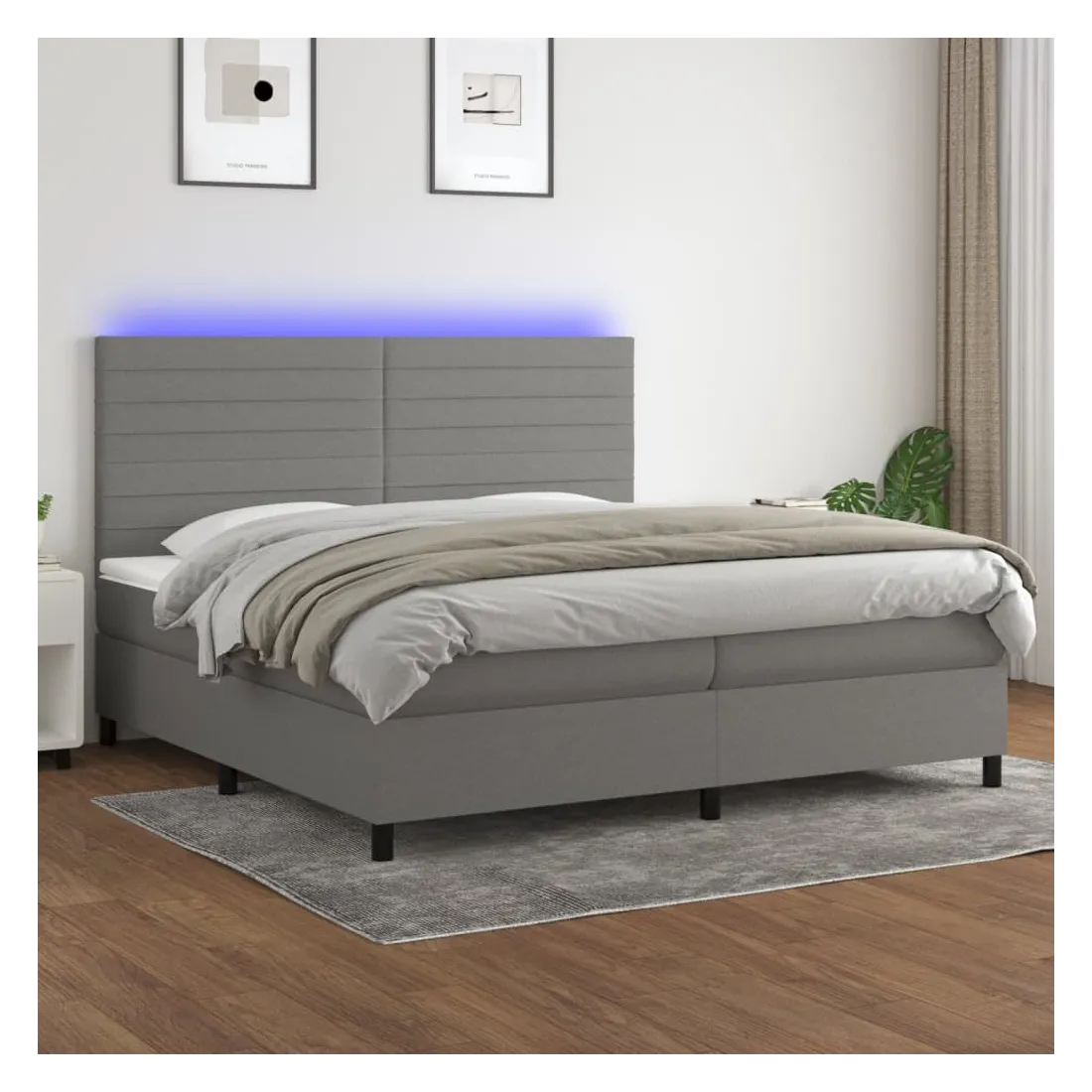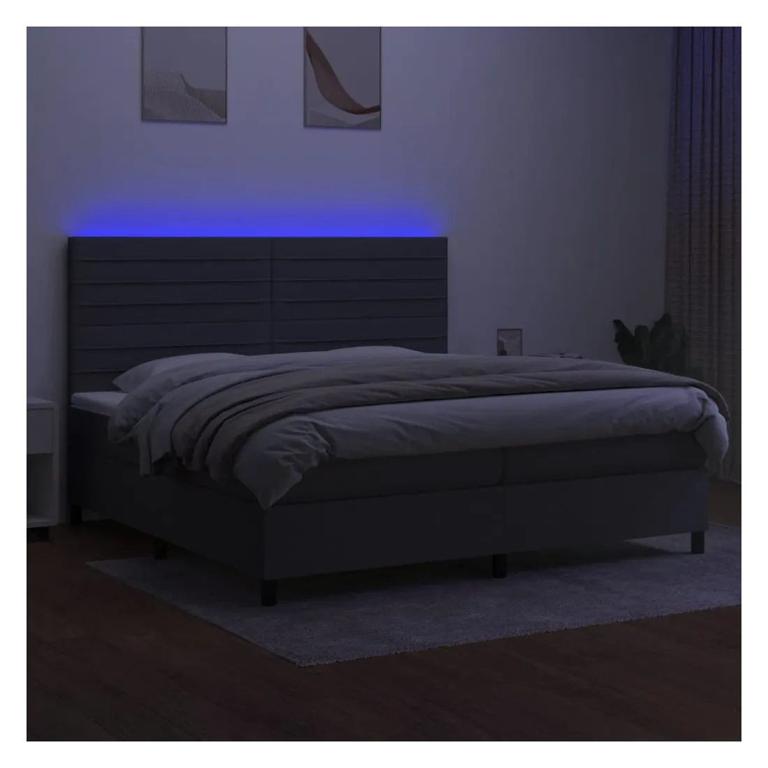 Utilisez ce sommier tapissier avec matelas et LED pour profiter d'un sommeil réparateur ! C'est le point central de votre chambre à coucher. Tissu durable : le tissu présente un aspect simple et épuré, et il est respirant et durable. Tête de lit pratique : la tête de lit est réglable en hauteur selon vos préférences. La tête de lit vous offre un excellent soutien du dos lorsque vous êtes assis dans votre lit pour lire ou regarder la télévision. Bande LED colorée : apportez de l'éclairage dans l'obscurité avec des lumières LED colorées ! Matelas à ressorts ensachés : le ressort ensaché individuel intégré est connu pour sa très haute qualité tout en assurant un haut niveau de durabilité et d'adaptabilité. Il peut absorber efficacement le bruit et les chocs causés par les sauts et les rot