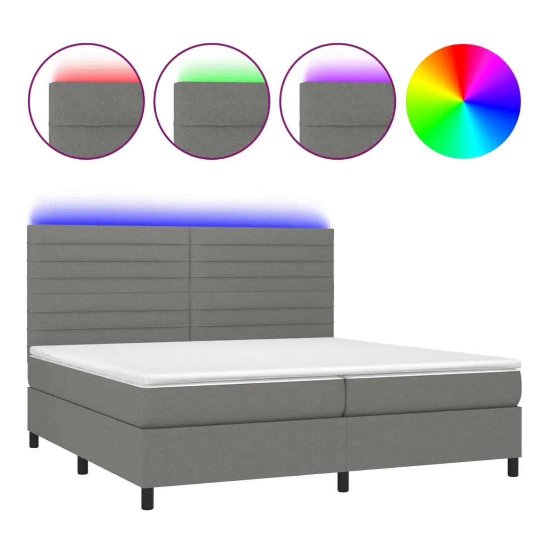 Sommier à lattes de lit et matelas et LED Gris foncé 200x200 cm