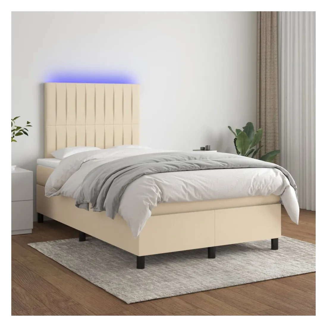 Utilisez ce sommier tapissier avec matelas et LED pour profiter d'un sommeil réparateur ! C'est le point central de votre chambre à coucher. Tissu durable : le tissu présente un aspect simple et épuré, et il est respirant et durable.Tête de lit pratique : la tête de lit est réglable en hauteur selon vos préférences. La tête de lit vous offre un excellent soutien du dos lorsque vous êtes assis dans votre lit pour lire ou regarder la télévision.Bande LED colorée : apportez de l'éclairage dans l'obscurité avec des lumières LED colorées !Matelas à ressorts ensachés : le ressort ensaché individuel intégré est connu pour sa très haute qualité tout en assurant un haut niveau de durabilité et d'adaptabilité. Il peut absorber efficacement le bruit et les chocs causés par les sauts et les rotations.Protège-matelas doux pour la peau : le protège-matelas est recouvert d'un tissu résistant et doux pour la peau, ce qui le rend souple et confortable. Remarque :Pour des raisons d'hygiène, le matelas ne peut pas être retourné si l'emballage est retiré ou ouvert.Seule la partie avec un symbole de ciseaux peut être coupée et seule la partie avec l'USB continuera à fonctionner comme avant.Chaque produit est livré avec un manuel de montage dans la boîte pour un montage facile.Ce produit est doté d'un connecteur USB, mais la source d'alimentation certifiée de USB 5V n'est pas incluse.