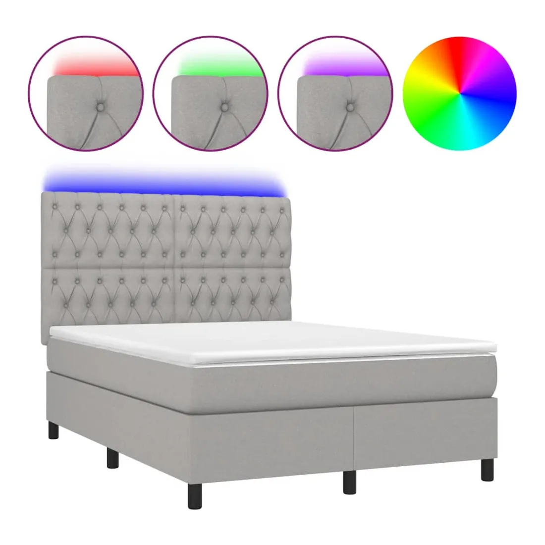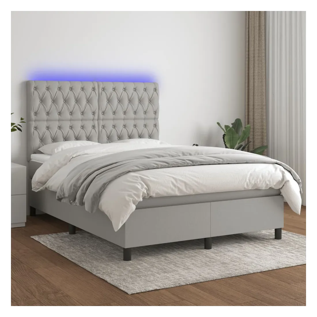 Utilisez ce sommier tapissier avec matelas et LED pour profiter d'un sommeil réparateur ! C'est le point central de votre chambre à coucher. Tissu durable : le tissu présente un aspect simple et épuré, et il est respirant et durable.Tête de lit pratique : la tête de lit est réglable en hauteur selon vos préférences. La tête de lit vous offre un excellent soutien du dos lorsque vous êtes assis dans votre lit pour lire ou regarder la télévision.Bande LED colorée : apportez de l'éclairage dans l'obscurité avec des lumières LED colorées !Matelas à ressorts ensachés : le ressort ensaché individuel intégré est connu pour sa très haute qualité tout en assurant un haut niveau de durabilité et d'adaptabilité. Il peut absorber efficacement le bruit et les chocs causés par les sauts et les rotations.Protège-matelas doux pour la peau : le protège-matelas est recouvert d'un tissu résistant et doux pour la peau, ce qui le rend souple et confortable. Remarque :Pour des raisons d'hygiène, le matelas ne peut pas être retourné si l'emballage est retiré ou ouvert.Seule la partie avec un symbole de ciseaux peut être coupée et seule la partie avec l'USB continuera à fonctionner comme avant.Chaque produit est livré avec un manuel de montage dans la boîte pour un montage facile.Ce produit est doté d'un connecteur USB, mais la source d'alimentation certifiée de USB 5V n'est pas incluse.