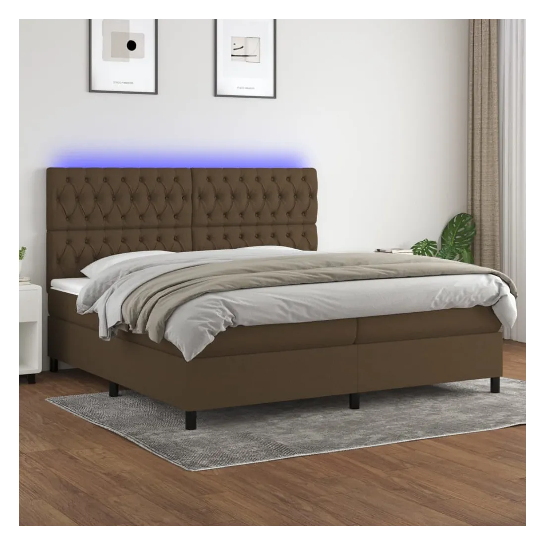 Utilisez ce sommier tapissier avec matelas et LED pour profiter d'un sommeil réparateur ! C'est le point central de votre chambre à coucher. Tissu durable : le tissu présente un aspect simple et épuré, et il est respirant et durable.Tête de lit pratique : la tête de lit est réglable en hauteur selon vos préférences. La tête de lit vous offre un excellent soutien du dos lorsque vous êtes assis dans votre lit pour lire ou regarder la télévision.Bande LED colorée : apportez de l'éclairage dans l'obscurité avec des lumières LED colorées !Matelas à ressorts ensachés : le ressort ensaché individuel intégré est connu pour sa très haute qualité tout en assurant un haut niveau de durabilité et d'adaptabilité. Il peut absorber efficacement le bruit et les chocs causés par les sauts et les rotations.Protège-matelas doux pour la peau : le protège-matelas est recouvert d'un tissu résistant et doux pour la peau, ce qui le rend souple et confortable. Remarque :Pour des raisons d'hygiène, le matelas ne peut pas être retourné si l'emballage est retiré ou ouvert.Seule la partie avec un symbole de ciseaux peut être coupée et seule la partie avec l'USB continuera à fonctionner comme avant.Chaque produit est livré avec un manuel de montage dans la boîte pour un montage facile.Ce produit est doté d'un connecteur USB, mais la source d'alimentation certifiée de USB 5V n'est pas incluse.
