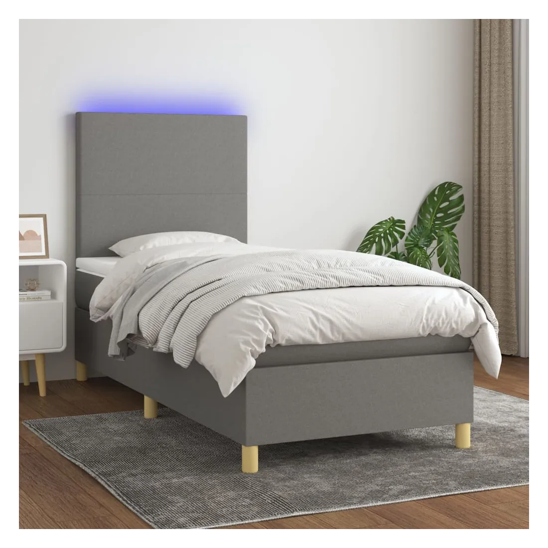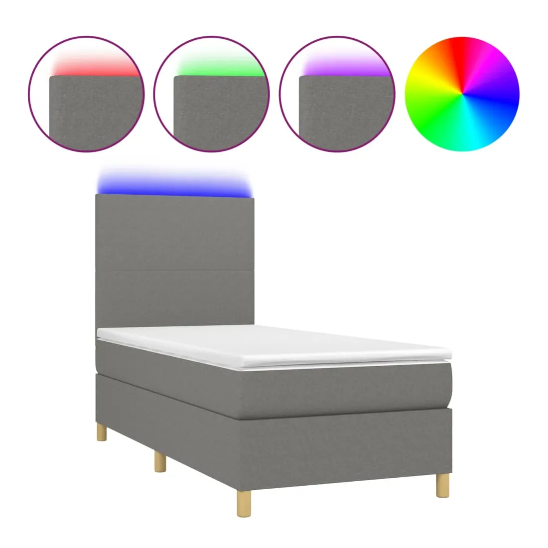 Sommier à lattes de lit avec matelas et LED Gris foncé 80x200cm