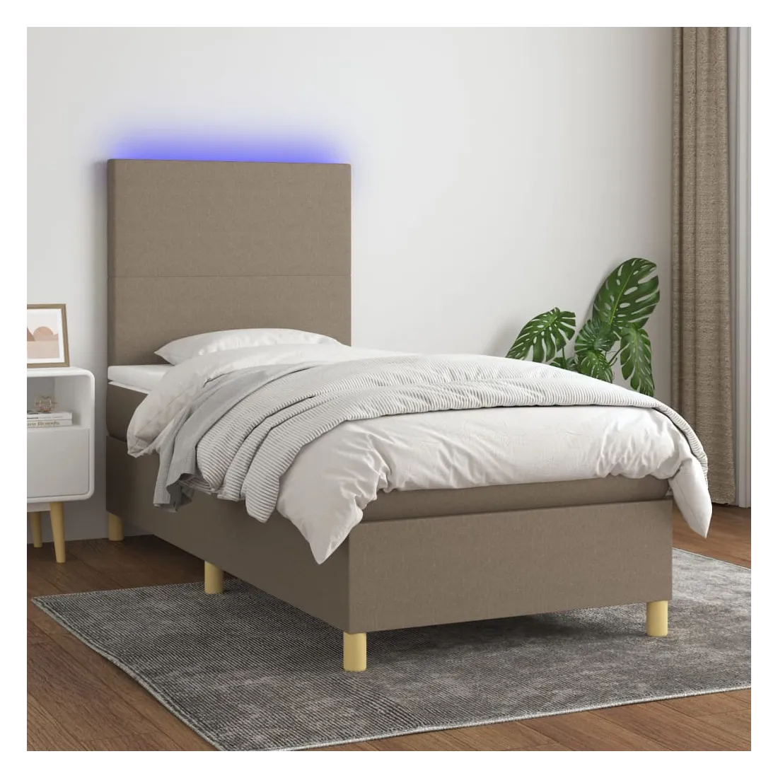 Sommier à lattes de lit et matelas et LED Taupe 80x200cm Tissu