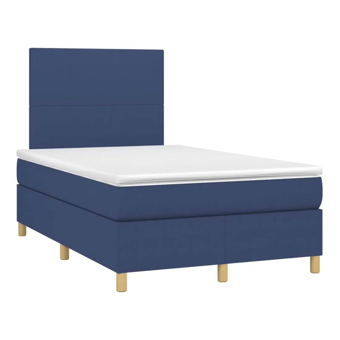 Sommier à lattes de lit et matelas et LED Bleu 120x200 cm Tissu