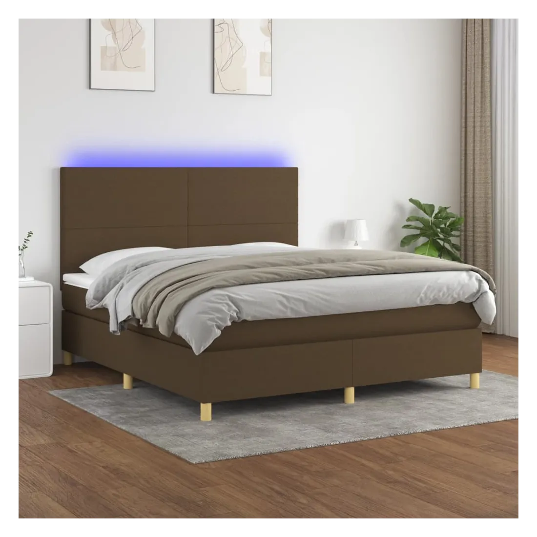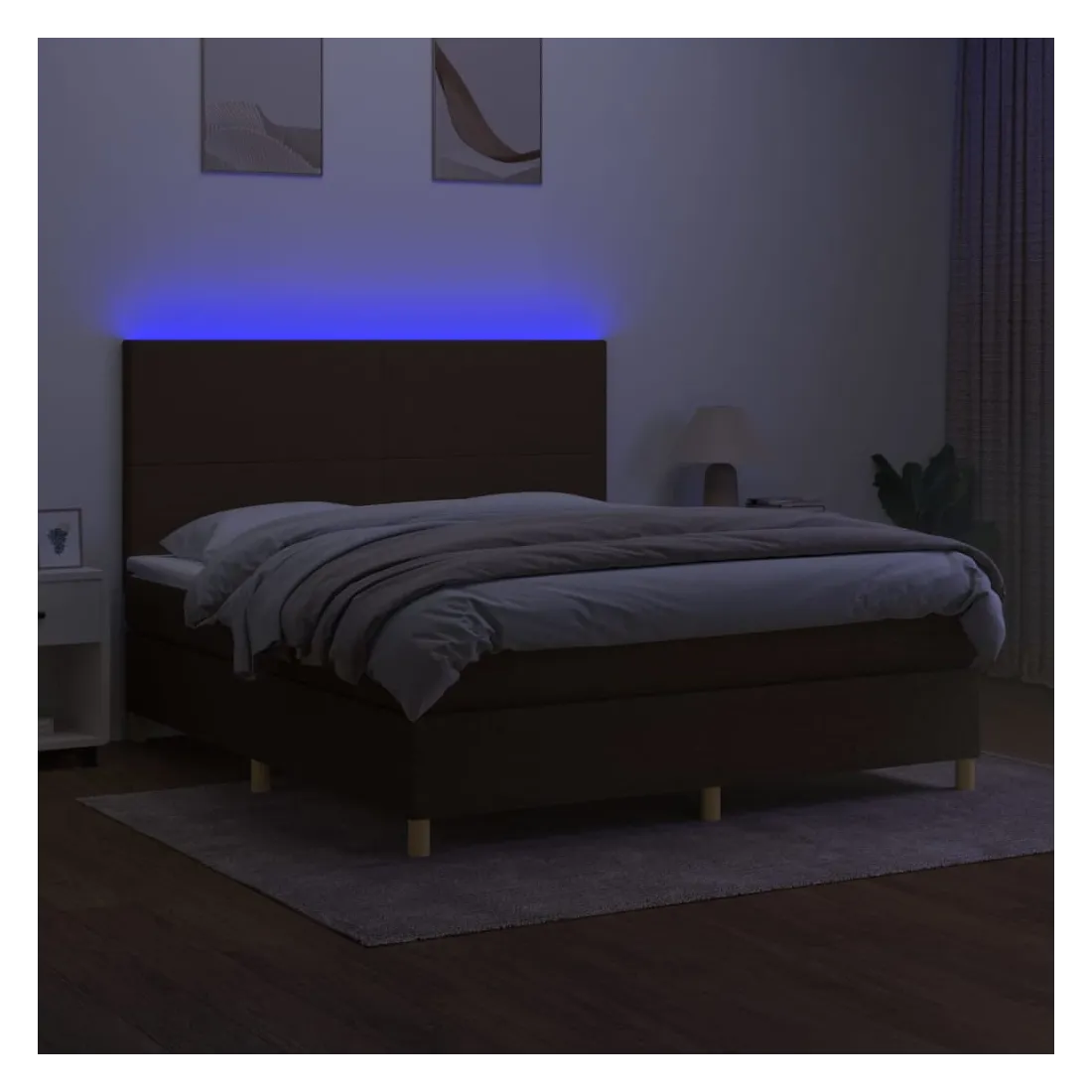 Sommier à lattes de lit matelas et LED Marron foncé 160x200 cm