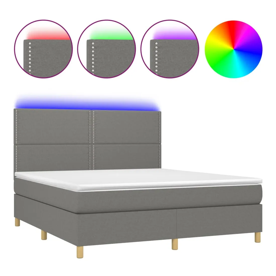 Utilisez ce sommier tapissier avec matelas et LED pour profiter d'un sommeil réparateur ! C'est le point central de votre chambre à coucher. Tissu durable : le tissu présente un aspect simple et épuré, et il est respirant et durable.Tête de lit pratique : la tête de lit est réglable en hauteur selon vos préférences. La tête de lit vous offre un excellent soutien du dos lorsque vous êtes assis dans votre lit pour lire ou regarder la télévision.Bande LED colorée : apportez de l'éclairage dans l'obscurité avec des lumières LED colorées !Matelas à ressorts ensachés : le ressort ensaché individuel intégré est connu pour sa très haute qualité tout en assurant un haut niveau de durabilité et d'adaptabilité. Il peut absorber efficacement le bruit et les chocs causés par les sauts et les rotations.Protège-matelas doux pour la peau : le protège-matelas est recouvert d'un tissu résistant et doux pour la peau, ce qui le rend souple et confortable. Remarque :Pour des raisons d'hygiène, le matelas ne peut pas être retourné si l'emballage est retiré ou ouvert.Seule la partie avec un symbole de ciseaux peut être coupée et seule la partie avec l'USB continuera à fonctionner comme avant.Chaque produit est livré avec un manuel de montage dans la boîte pour un montage facile.Ce produit est doté d'un connecteur USB, mais la source d'alimentation certifiée de USB 5V n'est pas incluse.