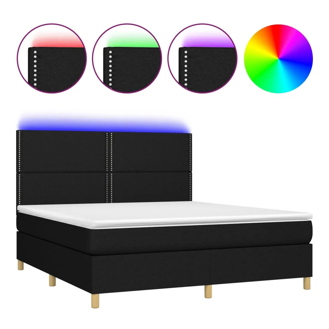 Utilisez ce sommier tapissier avec matelas et LED pour profiter d'un sommeil réparateur ! C'est le point central de votre chambre à coucher. Tissu durable : le tissu présente un aspect simple et épuré, et il est respirant et durable.Tête de lit pratique : la tête de lit est réglable en hauteur selon vos préférences. La tête de lit vous offre un excellent soutien du dos lorsque vous êtes assis dans votre lit pour lire ou regarder la télévision.Bande LED colorée : apportez de l'éclairage dans l'obscurité avec des lumières LED colorées !Matelas à ressorts ensachés : le ressort ensaché individuel intégré est connu pour sa très haute qualité tout en assurant un haut niveau de durabilité et d'adaptabilité. Il peut absorber efficacement le bruit et les chocs causés par les sauts et les rotations.Protège-matelas doux pour la peau : le protège-matelas est recouvert d'un tissu résistant et doux pour la peau, ce qui le rend souple et confortable. Remarque :Pour des raisons d'hygiène, le matelas ne peut pas être retourné si l'emballage est retiré ou ouvert.Seule la partie avec un symbole de ciseaux peut être coupée et seule la partie avec l'USB continuera à fonctionner comme avant.Chaque produit est livré avec un manuel de montage dans la boîte pour un montage facile.Ce produit est doté d'un connecteur USB, mais la source d'alimentation certifiée de USB 5V n'est pas incluse.