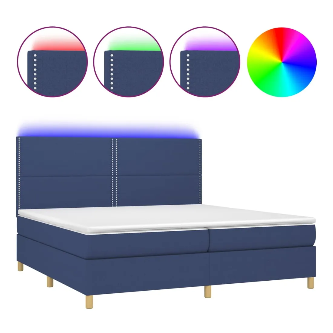 Sommier à lattes de lit et matelas et LED Bleu 200x200 cm Tissu