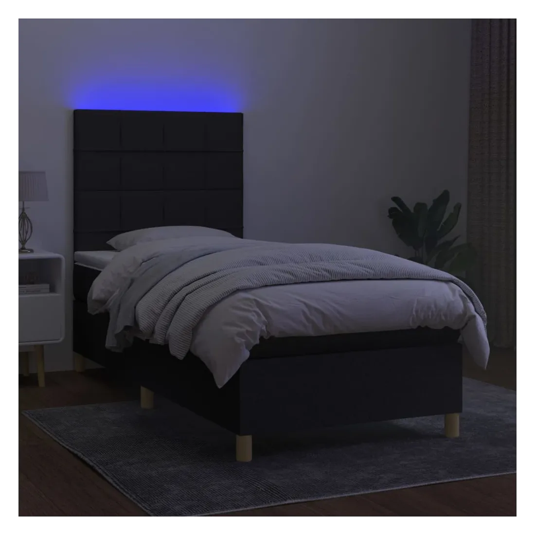 Sommier à lattes de lit et matelas et LED Noir 90x190 cm Tissu