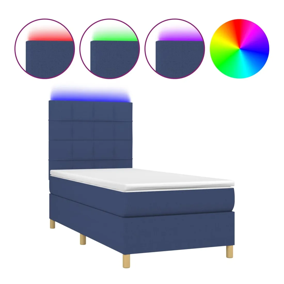 Sommier à lattes de lit et matelas et LED Bleu 90x200 cm Tissu