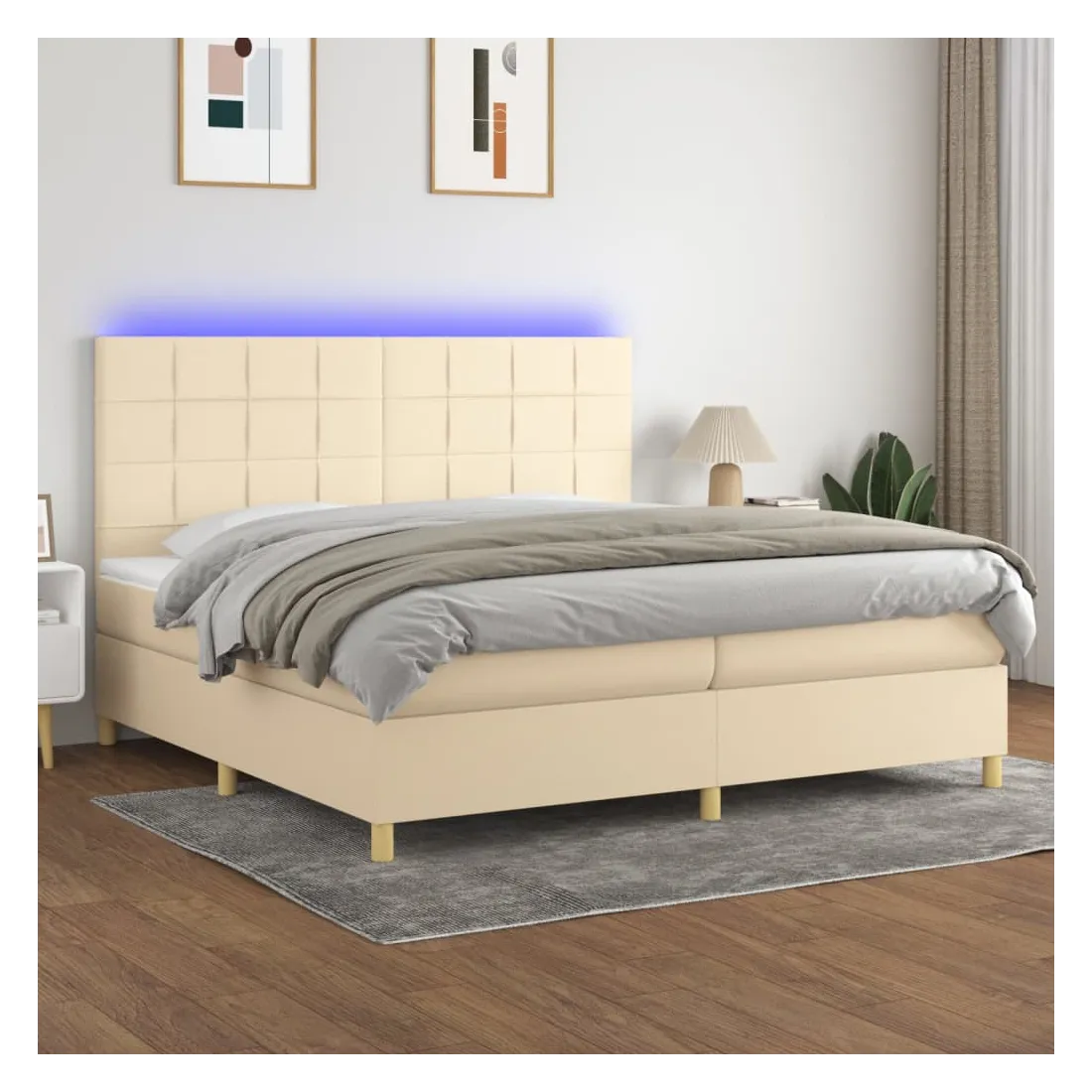 Utilisez ce sommier tapissier avec matelas et LED pour profiter d'un sommeil réparateur ! C'est le point central de votre chambre à coucher. Tissu durable : le tissu présente un aspect simple et épuré, et il est respirant et durable.Tête de lit pratique : la tête de lit est réglable en hauteur selon vos préférences. La tête de lit vous offre un excellent soutien du dos lorsque vous êtes assis dans votre lit pour lire ou regarder la télévision.Bande LED colorée : apportez de l'éclairage dans l'obscurité avec des lumières LED colorées !Matelas à ressorts ensachés : le ressort ensaché individuel intégré est connu pour sa très haute qualité tout en assurant un haut niveau de durabilité et d'adaptabilité. Il peut absorber efficacement le bruit et les chocs causés par les sauts et les rotations.Protège-matelas doux pour la peau : le protège-matelas est recouvert d'un tissu résistant et doux pour la peau, ce qui le rend souple et confortable. Remarque :Pour des raisons d'hygiène, le matelas ne peut pas être retourné si l'emballage est retiré ou ouvert.Seule la partie avec un symbole de ciseaux peut être coupée et seule la partie avec l'USB continuera à fonctionner comme avant.Chaque produit est livré avec un manuel de montage dans la boîte pour un montage facile.Ce produit est doté d'un connecteur USB, mais la source d'alimentation certifiée de USB 5V n'est pas incluse.