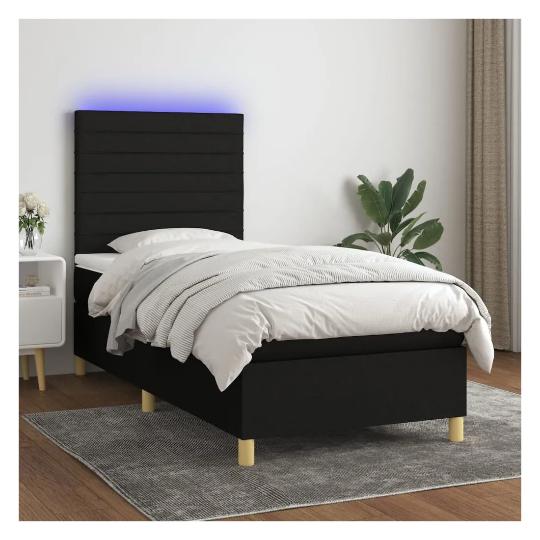 Sommier à lattes de lit et matelas et LED Noir 90x200 cm Tissu