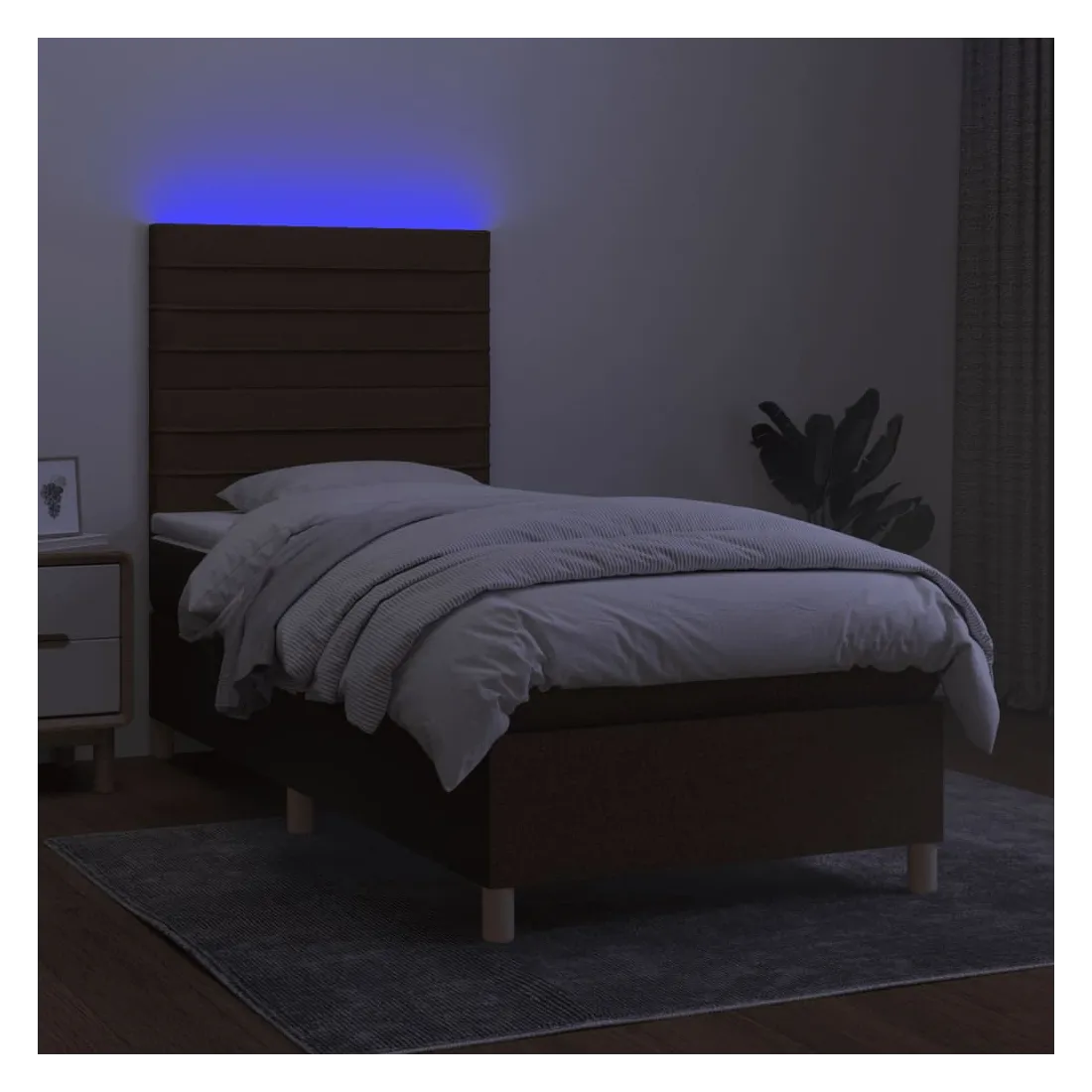 Sommier à lattes de lit matelas et LED Marron foncé 100x200 cm