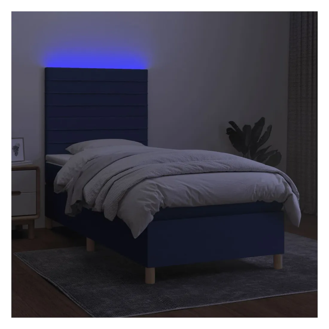 Utilisez ce sommier tapissier avec matelas et LED pour profiter d'un sommeil réparateur ! C'est le point central de votre chambre à coucher. Tissu durable : le tissu présente un aspect simple et épuré, et il est respirant et durable.Tête de lit pratique : la tête de lit est réglable en hauteur selon vos préférences. La tête de lit vous offre un excellent soutien du dos lorsque vous êtes assis dans votre lit pour lire ou regarder la télévision.Bande LED colorée : apportez de l'éclairage dans l'obscurité avec des lumières LED colorées !Matelas à ressorts ensachés : le ressort ensaché individuel intégré est connu pour sa très haute qualité tout en assurant un haut niveau de durabilité et d'adaptabilité. Il peut absorber efficacement le bruit et les chocs causés par les sauts et les rotations.Protège-matelas doux pour la peau : le protège-matelas est recouvert d'un tissu résistant et doux pour la peau, ce qui le rend souple et confortable. Remarque :Pour des raisons d'hygiène, le matelas ne peut pas être retourné si l'emballage est retiré ou ouvert.Seule la partie avec un symbole de ciseaux peut être coupée et seule la partie avec l'USB continuera à fonctionner comme avant.Chaque produit est livré avec un manuel de montage dans la boîte pour un montage facile.Ce produit est doté d'un connecteur USB, mais la source d'alimentation certifiée de USB 5V n'est pas incluse.