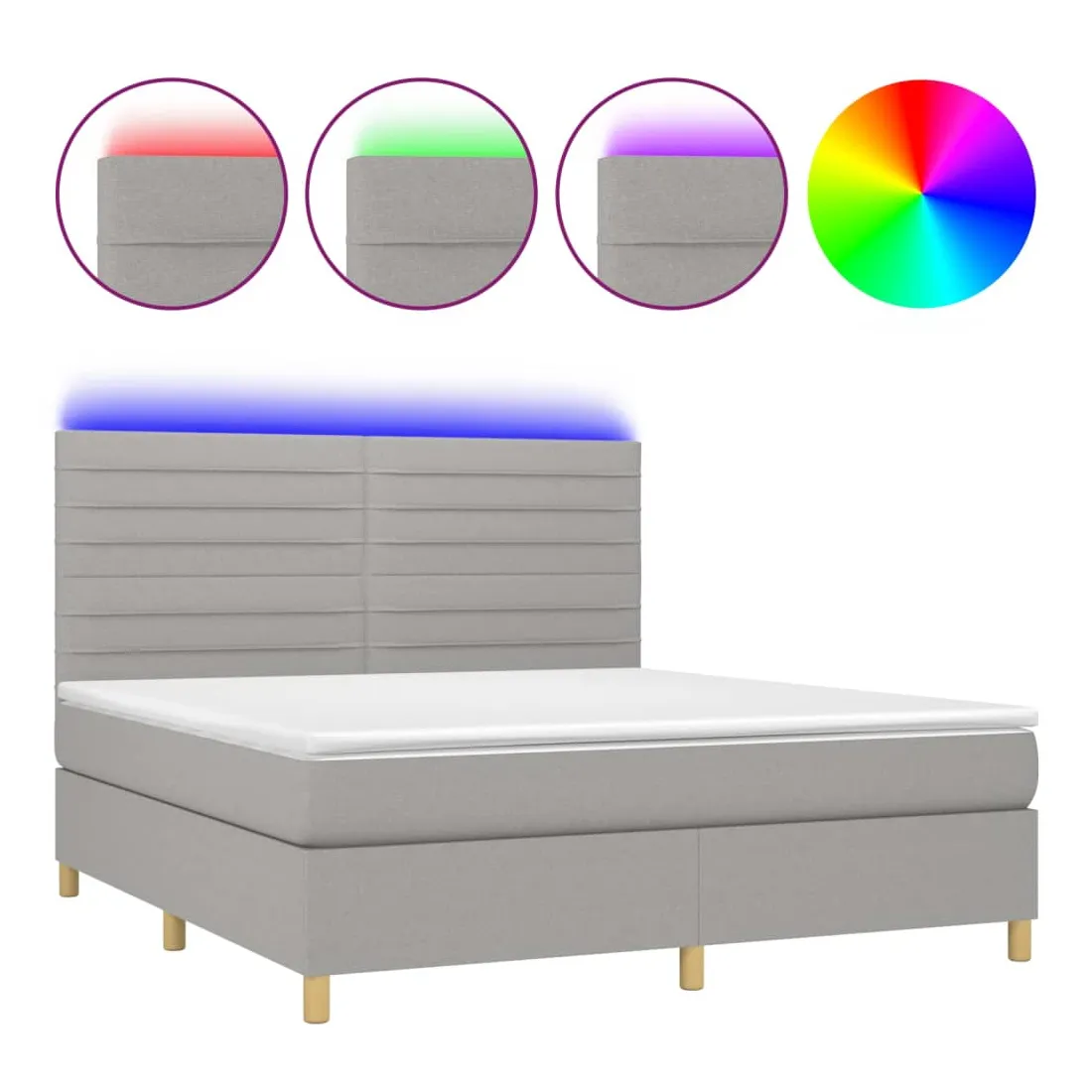 Utilisez ce sommier tapissier avec matelas et LED pour profiter d'un sommeil réparateur ! C'est le point central de votre chambre à coucher. Tissu durable : le tissu présente un aspect simple et épuré, et il est respirant et durable.Tête de lit pratique : la tête de lit est réglable en hauteur selon vos préférences. La tête de lit vous offre un excellent soutien du dos lorsque vous êtes assis dans votre lit pour lire ou regarder la télévision.Bande LED colorée : apportez de l'éclairage dans l'obscurité avec des lumières LED colorées !Matelas à ressorts ensachés : le ressort ensaché individuel intégré est connu pour sa très haute qualité tout en assurant un haut niveau de durabilité et d'adaptabilité. Il peut absorber efficacement le bruit et les chocs causés par les sauts et les rotations.Protège-matelas doux pour la peau : le protège-matelas est recouvert d'un tissu résistant et doux pour la peau, ce qui le rend souple et confortable. Remarque :Pour des raisons d'hygiène, le matelas ne peut pas être retourné si l'emballage est retiré ou ouvert.Seule la partie avec un symbole de ciseaux peut être coupée et seule la partie avec l'USB continuera à fonctionner comme avant.Chaque produit est livré avec un manuel de montage dans la boîte pour un montage facile.Ce produit est doté d'un connecteur USB, mais la source d'alimentation certifiée de USB 5V n'est pas incluse.