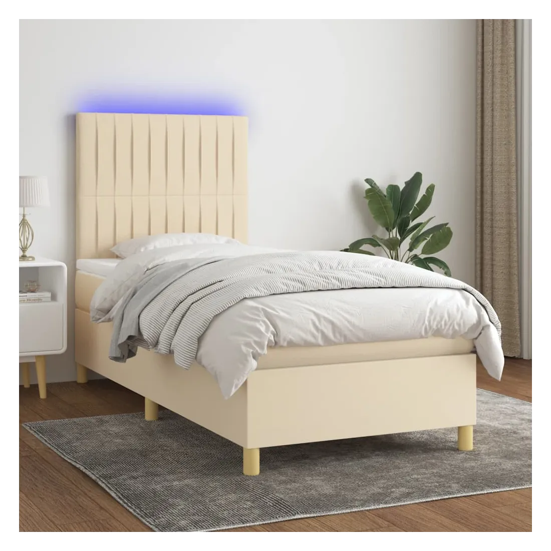 Utilisez ce sommier tapissier avec matelas et LED pour profiter d'un sommeil réparateur ! C'est le point central de votre chambre à coucher. Tissu durable : le tissu présente un aspect simple et épuré, et il est respirant et durable.Tête de lit pratique : la tête de lit est réglable en hauteur selon vos préférences. La tête de lit vous offre un excellent soutien du dos lorsque vous êtes assis dans votre lit pour lire ou regarder la télévision.Bande LED colorée : apportez de l'éclairage dans l'obscurité avec des lumières LED colorées !Matelas à ressorts ensachés : le ressort ensaché individuel intégré est connu pour sa très haute qualité tout en assurant un haut niveau de durabilité et d'adaptabilité. Il peut absorber efficacement le bruit et les chocs causés par les sauts et les rotations.Protège-matelas doux pour la peau : le protège-matelas est recouvert d'un tissu résistant et doux pour la peau, ce qui le rend souple et confortable. Remarque :Pour des raisons d'hygiène, le matelas ne peut pas être retourné si l'emballage est retiré ou ouvert.Seule la partie avec un symbole de ciseaux peut être coupée et seule la partie avec l'USB continuera à fonctionner comme avant.Chaque produit est livré avec un manuel de montage dans la boîte pour un montage facile.Ce produit est doté d'un connecteur USB, mais la source d'alimentation certifiée de USB 5V n'est pas incluse.