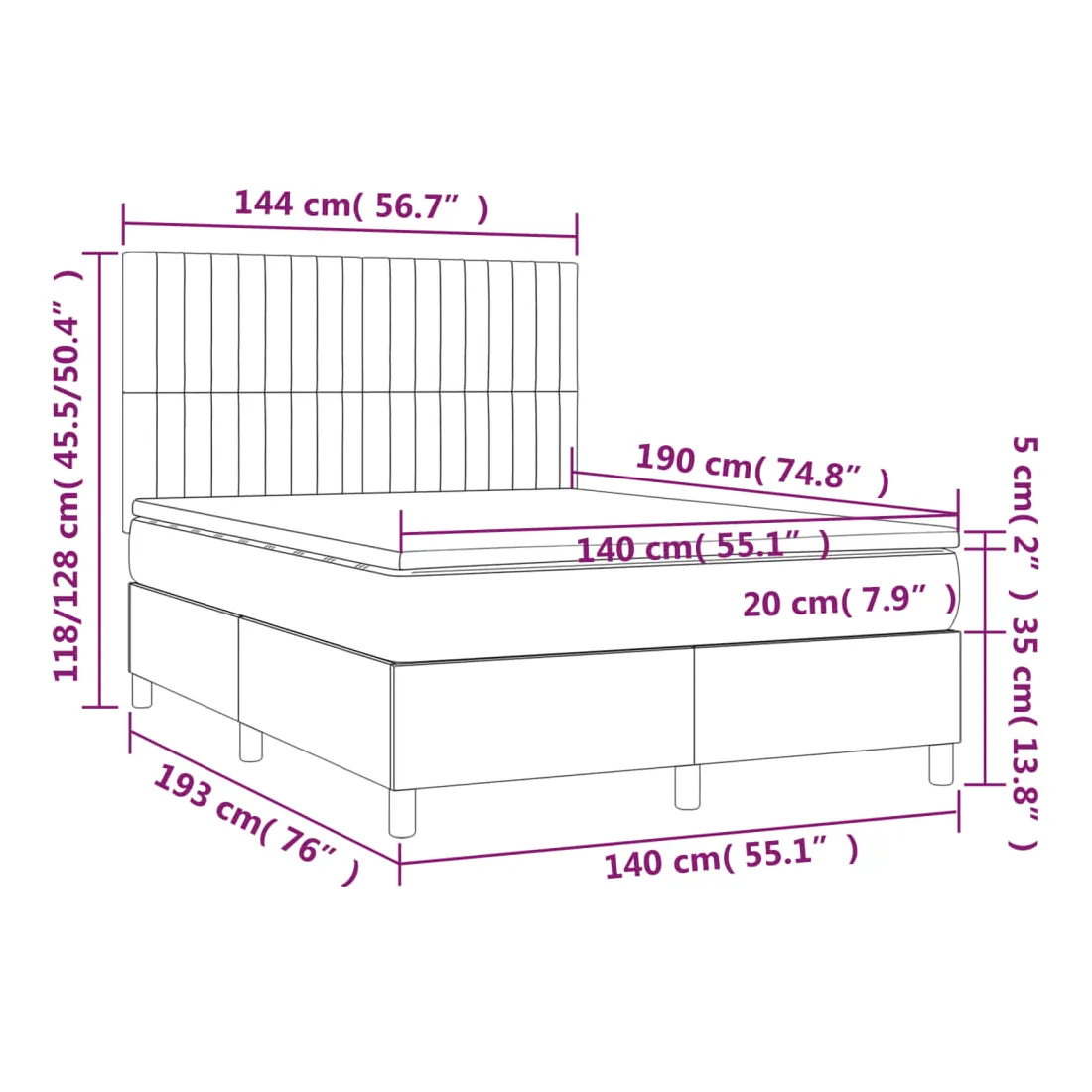 Utilisez ce sommier tapissier avec matelas et LED pour profiter d'un sommeil réparateur ! C'est le point central de votre chambre à coucher. Tissu durable : le tissu présente un aspect simple et épuré, et il est respirant et durable.Tête de lit pratique : la tête de lit est réglable en hauteur selon vos préférences. La tête de lit vous offre un excellent soutien du dos lorsque vous êtes assis dans votre lit pour lire ou regarder la télévision.Bande LED colorée : apportez de l'éclairage dans l'obscurité avec des lumières LED colorées !Matelas à ressorts ensachés : le ressort ensaché individuel intégré est connu pour sa très haute qualité tout en assurant un haut niveau de durabilité et d'adaptabilité. Il peut absorber efficacement le bruit et les chocs causés par les sauts et les rotations.Protège-matelas doux pour la peau : le protège-matelas est recouvert d'un tissu résistant et doux pour la peau, ce qui le rend souple et confortable. Remarque :Pour des raisons d'hygiène, le matelas ne peut pas être retourné si l'emballage est retiré ou ouvert.Seule la partie avec un symbole de ciseaux peut être coupée et seule la partie avec l'USB continuera à fonctionner comme avant.Chaque produit est livré avec un manuel de montage dans la boîte pour un montage facile.Ce produit est doté d'un connecteur USB, mais la source d'alimentation certifiée de USB 5V n'est pas incluse.
