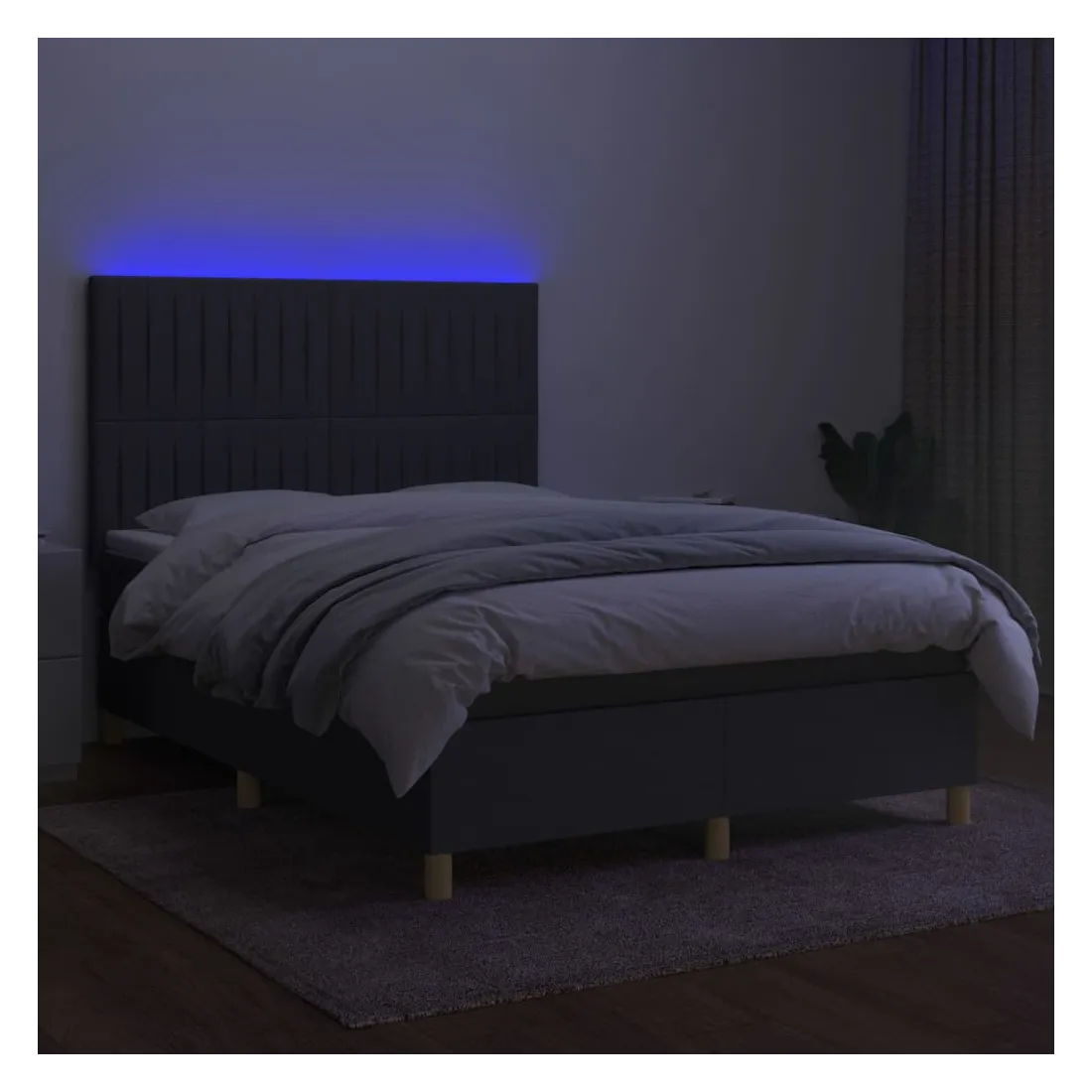 Utilisez ce sommier tapissier avec matelas et LED pour profiter d'un sommeil réparateur ! C'est le point central de votre chambre à coucher. Tissu durable : le tissu présente un aspect simple et épuré, et il est respirant et durable.Tête de lit pratique : la tête de lit est réglable en hauteur selon vos préférences. La tête de lit vous offre un excellent soutien du dos lorsque vous êtes assis dans votre lit pour lire ou regarder la télévision.Bande LED colorée : apportez de l'éclairage dans l'obscurité avec des lumières LED colorées !Matelas à ressorts ensachés : le ressort ensaché individuel intégré est connu pour sa très haute qualité tout en assurant un haut niveau de durabilité et d'adaptabilité. Il peut absorber efficacement le bruit et les chocs causés par les sauts et les rotations.Protège-matelas doux pour la peau : le protège-matelas est recouvert d'un tissu résistant et doux pour la peau, ce qui le rend souple et confortable. Remarque :Pour des raisons d'hygiène, le matelas ne peut pas être retourné si l'emballage est retiré ou ouvert.Seule la partie avec un symbole de ciseaux peut être coupée et seule la partie avec l'USB continuera à fonctionner comme avant.Chaque produit est livré avec un manuel de montage dans la boîte pour un montage facile.Ce produit est doté d'un connecteur USB, mais la source d'alimentation certifiée de USB 5V n'est pas incluse.
